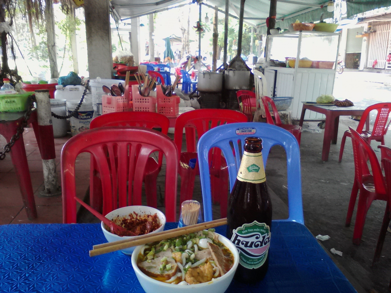 ちなみにですがバー・ドイはフエ市内に4店舗あり、残りの3つは旧市街王宮西側のNguyen Trai通りとSAN VAN DONGスタジアム東側のVan An通りとやや北部郊外のDao Duy Anh通りにあります。写真の地図の赤丸付近ですので参照して下さい。Google mapにも載っています。- 旅行時期