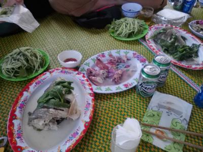 泊まっていた宿の皆さんと一緒にシーフードを食べに行きました。シーズン中は海沿いにいくつかレストランがオープンするそうですが2月のオフシーズンでもやっていました。泳ぐにはまだ早いですが天気がよければ満喫できます。もちろん今回は車で連れて行ってもらいましたが前回は自転車、フエ市内からなら行けない距離ではありませんが若干遠いかなと。バイクを借りて行くならちょうどいい距離だと思いますが安く楽して行きたいなら市内を走る3番の路線バスでも行けます。Big Cの前から乗るのがわかりやすいと思います。