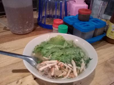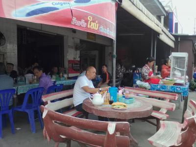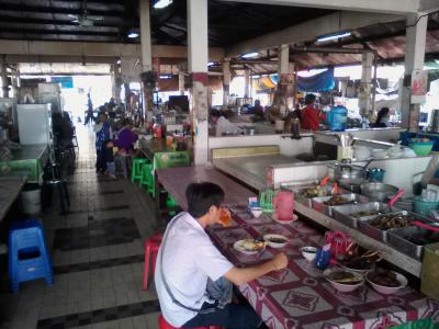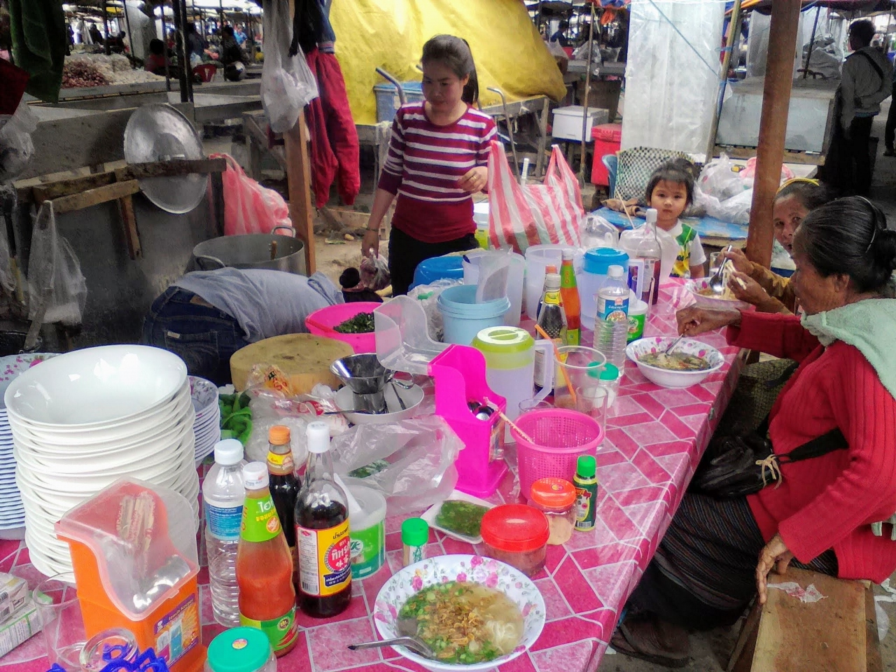 サワンナケートの巨大な中央市場。ソンテオの発着場も兼ねておりローカルバスステーションにもなっています。内部は衣類やバッグ、靴、生活雑貨、モバイルの店がぎっしりで迷路のようです。もちろん飲食コーナーもあり、いわゆるぶっかけ飯なら12000kip〜、麺類なら8000kip〜で食べられます。市場の建物の西側にはラオスらしい露天市場もあります。主には野菜や果物などの生鮮品売り場になっていますがぽつぽつと麺料理の食べられる屋台もあります。その一つでカオピヤックセンが5000kipで食べられました。ちょうど隣りではおばちゃん二人組がお食事中。私が食べ始めるとナンプラーを入れろだとか、唐辛子、酢を入れたらおいしくなるだとかいろいろ世話を焼いてくれました。こんな地元交流もできる楽しいところです。