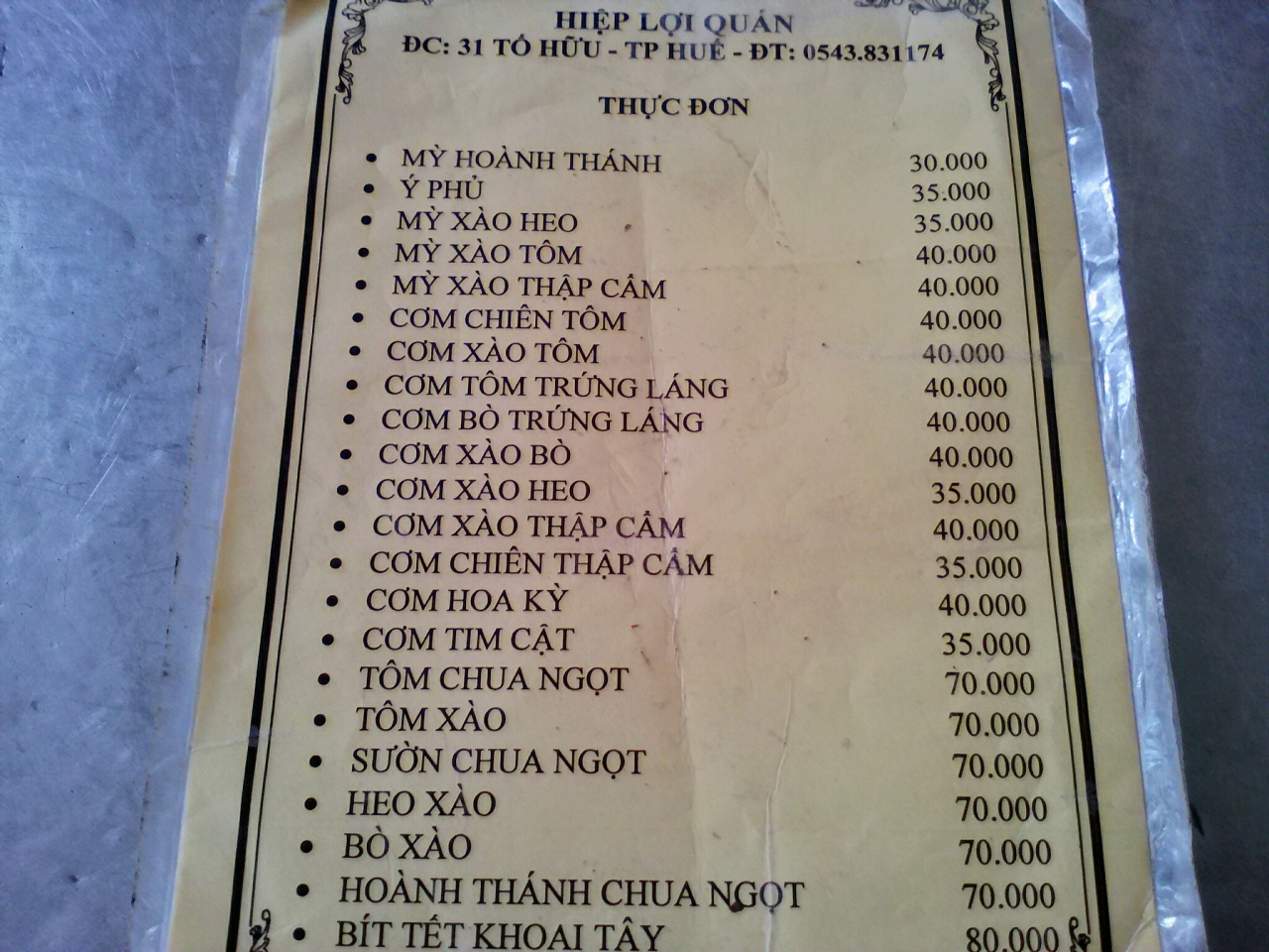 フエに来たら必ず一度は足を運ぶレストラン。中華風のベトナム料理がウリです。レストランと言っても完全なるローカル食堂なので入りやすいです。何人かで行けば単品料理をシェアすることができますが一人で行くならミー・サオ(焼きそば)やコム・チエン(チャーハン)がおすすめ。