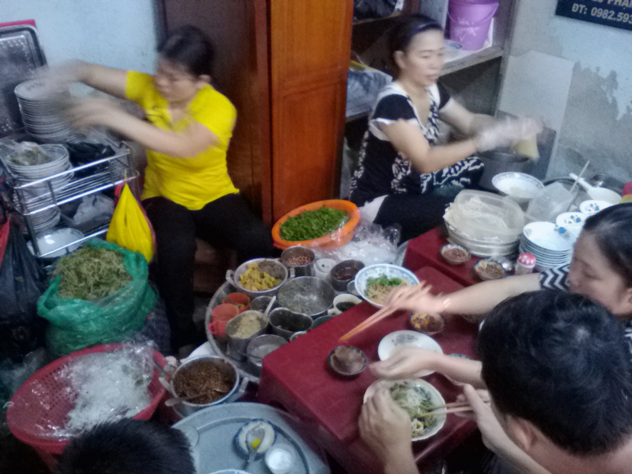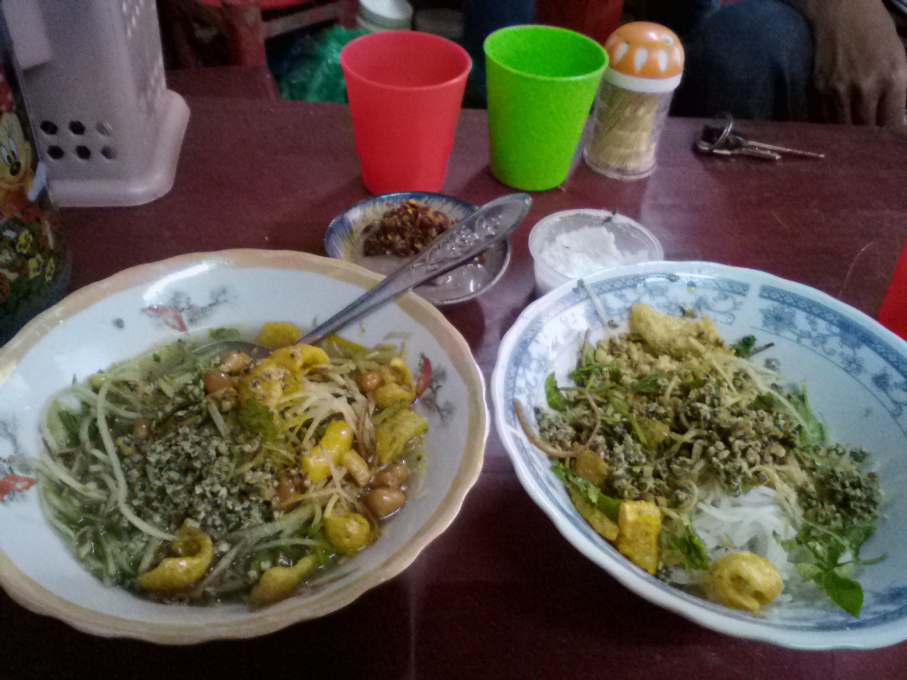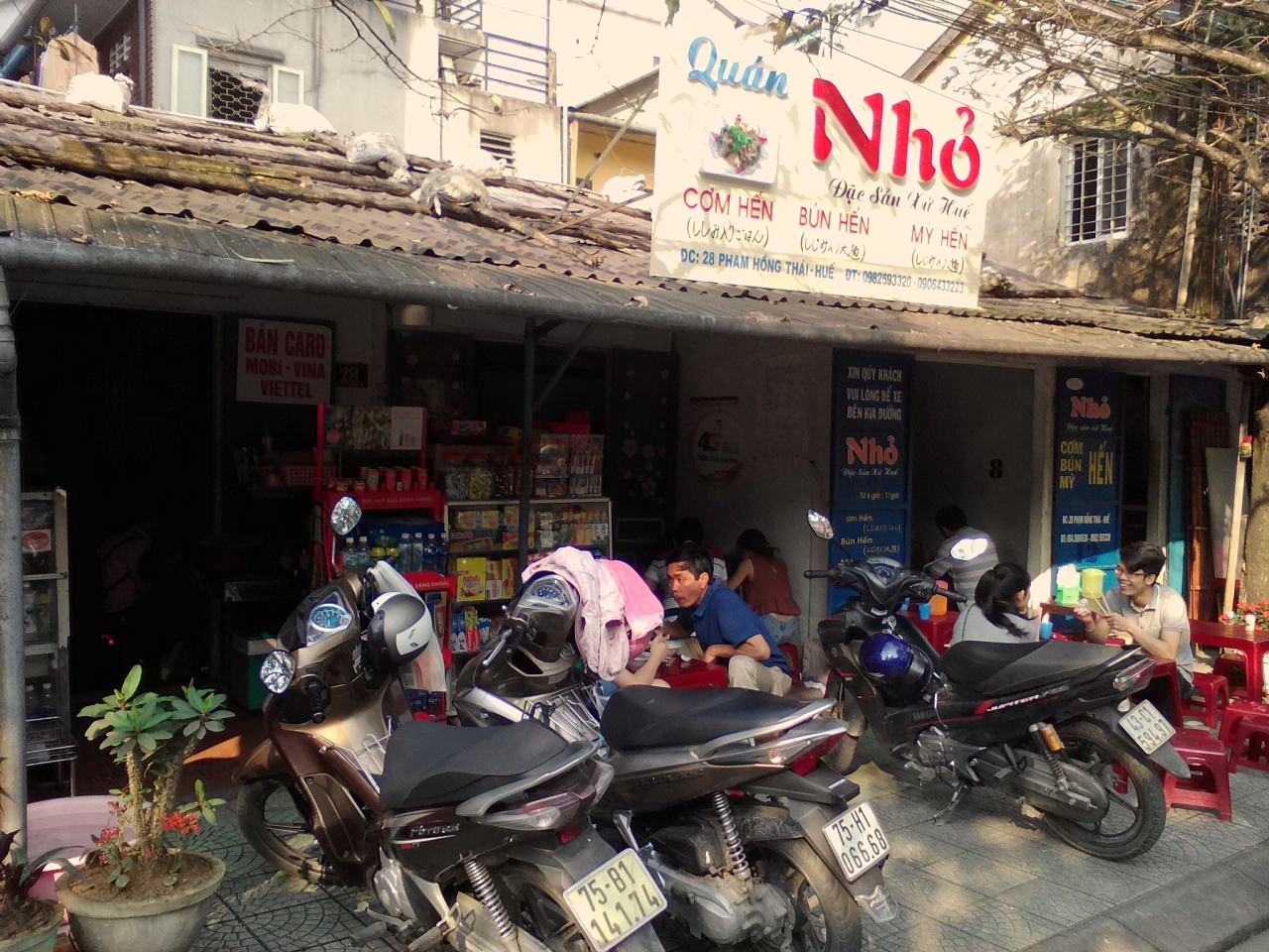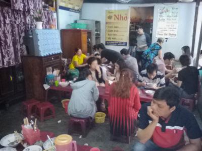 コムヘン(シジミご飯)の人気店。日曜の朝8:00頃行ったら店内は超満員。一人だったのでなんとか席を確保できましたがグループで行くと少し待たないといけないかもしれません。以前来たときは1杯しか食べずに物足りなかったので今回は最初からコムヘンとブンヘン(シジミ入りの米粉麺)をオーダー。ブンヘンはスープ無しで運ばれてきましたが言えばスープをもらえます。2つ食べ比べた感想ですがブンヘンの方が味が濃く美味しかったです。周りの客も皆2杯は食べているのでぜひ2種類食べることをおすすめします。どれも1杯1万ドンです。朝10時頃には閉まってしまうのでお早めに…。