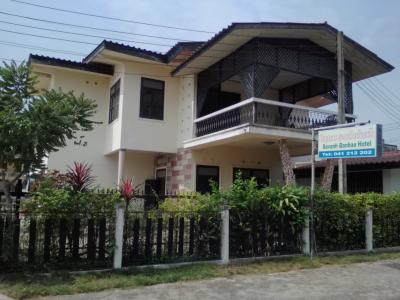 市街南端にあるローカルなホテル。旅行者というよりは現地人のためのビジネスホテルといった感じ。料金はダブル(FAN)で3万kip〜と格安です。ちゃんと安いのには理由があります。まずは掘っ立て小屋風のトイレ、シャワー。もちろん水のみです。そしてWifiなし(全室)、連れ込み宿も兼ねているので日によっては色んな物音、声が漏れてきます。