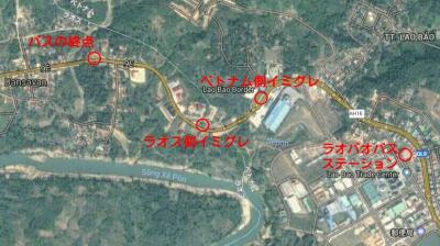 ベトナム側の国境の町はラオバオ。フエ行きのバス(ワゴンタイプ)はラオバオバスステーションから出ています(場所は写真の地図参照)が本数、時間は未確認。料金はテト(ベトナム正月)価格で10万ドン。通常はもう少し安いです。15:00に出発と言われましたが14:30にやって来て町中、国境付近をぐるぐる回り客拾い。結局ラオバオを離れたのは15:30。その間に2〜3回国境に立ち寄ったのでにバスステーションまで行かなくてもイミグレを出たところで待っていれば乗れるかもしれません。ドンハ行きのバスは頻繁にやってくるのでドンハまで行きフエ行きに乗り換えた方が多少料金は高くなりますが早く着けるかも。
