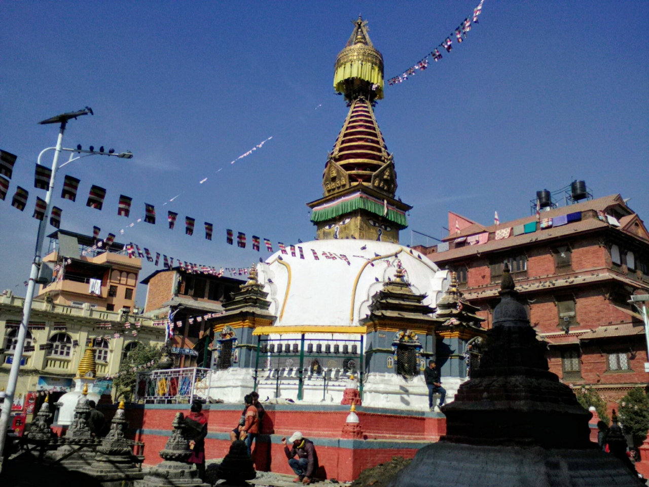タヒティチョークの南西すぐそばにあります。タヒティチョークからインドラチョークへ50mほど南下すると正面入口があります。中は意外なほどの広々空間、で、これまた意外なほどの大きなストゥーパがあります。観光客が少ないかわりにいるのは周辺の住民でしょうか、日向ぼっこエリアになっています。