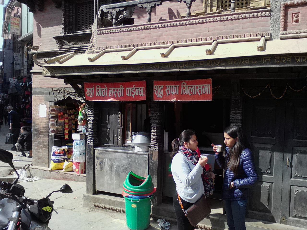 インドラチョークにある落ち着きのある重厚感漂う寺院。2階バルコニー部分には4頭の金色の獅子像が並んでいます。この寺院を訪れた方なら気付いた方もいるかもしれませんが寺院向かって左手には何やら人だかりが…。実はこれ、人気のラッシー屋。何で寺院の一部がラッシー屋なのかという疑問はさておき、飲んでみて下さい。激うま!です。レーズンとナッツ、チーズのようなクリームがトッピングされて大70Rs、小40Rs。濃厚な味わいでほんとおいしいです。クセになりそう…。一度おためしを…。