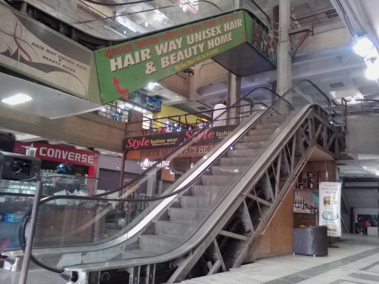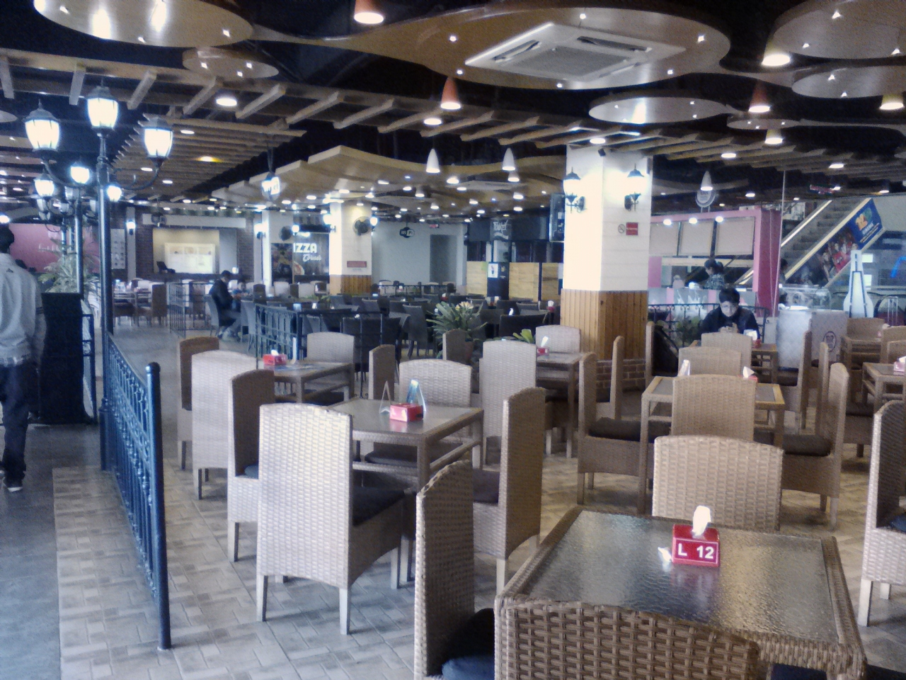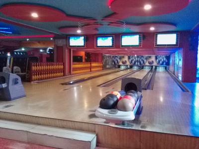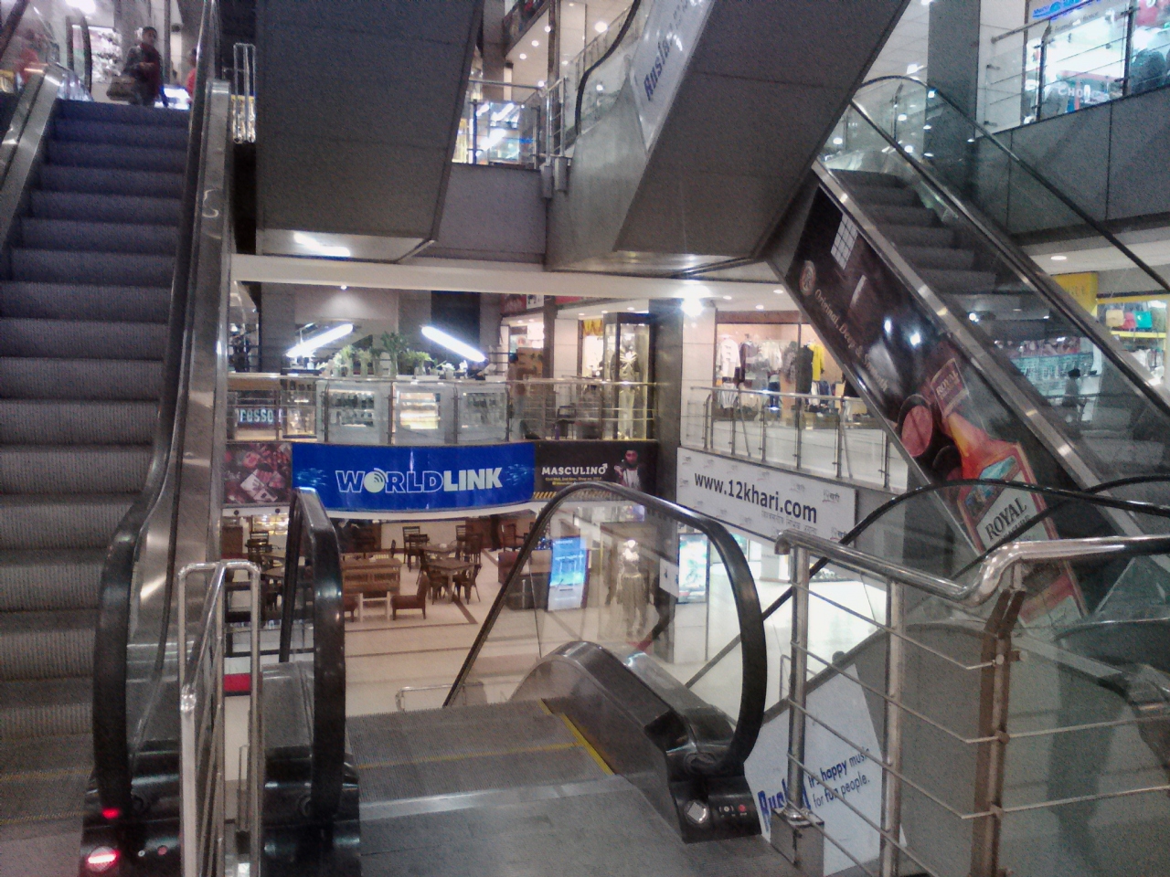 ややセンスに欠けますが外見はまあよしとしましょう。内部は最先端ショッピングモールを目指したのでしょうが残念ながら“風”にとどまっています。垢抜けてない感が半端なくツッコミどころ満載です。まず暗い!電力不足?エスカレーターの建付けが悪い!パコパコいってます。店の前で火を燃やすな!宗教的なものかもしれませんがこれはアウト。探せばもっといろいろあると思います。で、6F(7階)には一応フードコート、7Fにはわけのわからない映画館(450Rs)と4レーンのボーリング場(1ゲーム200Rs,貸靴無料)があります。どれもショボショボですが…。