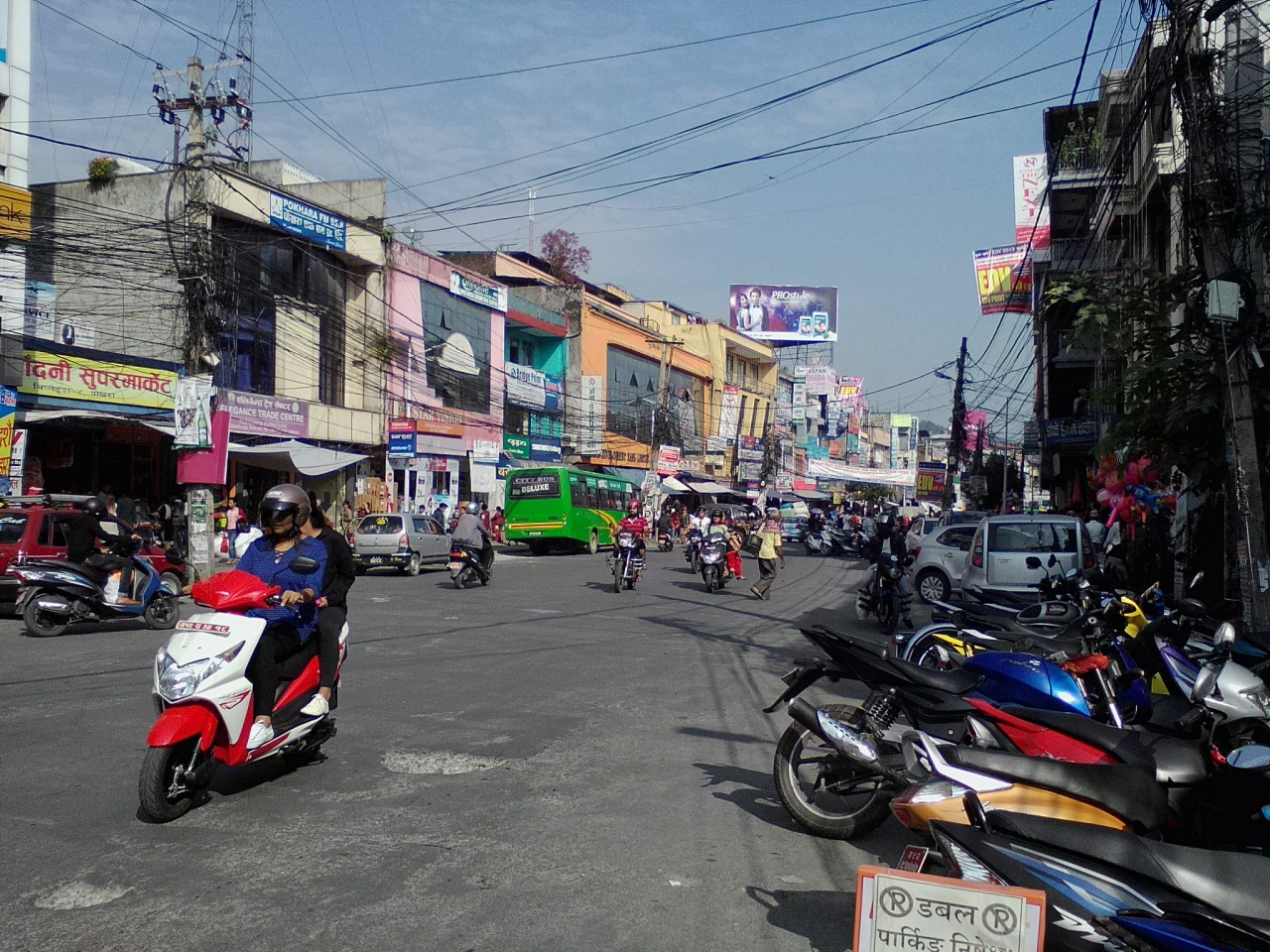 ポカラの市街の中心部。光の祭りとも言われる収穫祭、「ティハール」の前日だったからかどうかはわかりませんがかなりの賑わいでした。バーゲンセールには女性達が群がり歩道はまともに歩けないくらい。商店や銀行が並び、大きなデパートやスーパーマーケットもあります。決してレイクサイドがポカラの町ではありません。バスを使えば簡単に行けますのでポカラの“素”の部分も見てみて下さい。