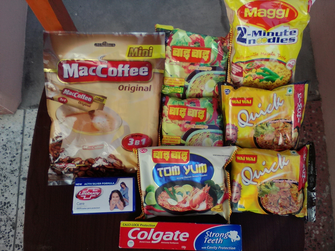 ポカラ一の規模を誇るショッピングモール。1階にはポカラ最大のスーパーマーケットが入っています。久しぶりに利用するスーパーマーケットはテンション上がります。何か買わなくては…と、わけのわからない強迫観念に迫られます。で、ついつい旅のストック品として石けんや歯磨き粉も買ってしまいました。他にはインスタントラーメンとコーヒー(3in1)。今までネスカフェは高くて手が出せませんでしたが「Mac Coffee」は16本入りで185Rs。1本あたり11.5Rsとネスカフェの約半額のお値段です。品揃え豊富なスーパーならではの商品ラインナップに感謝です。