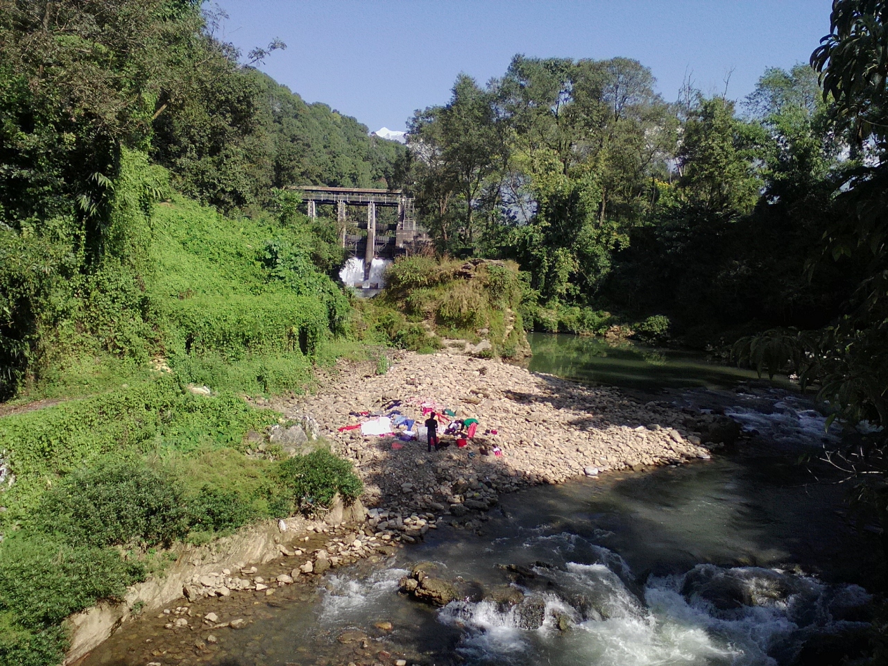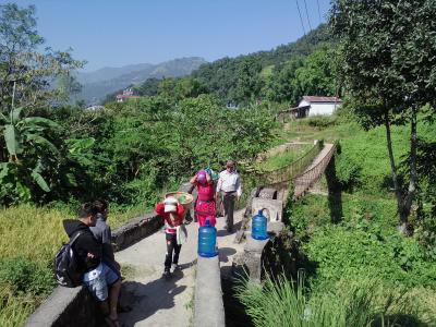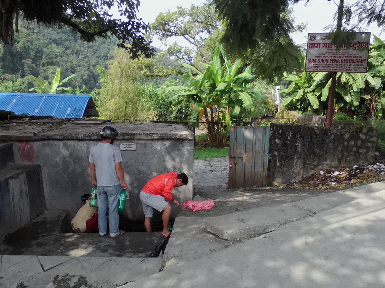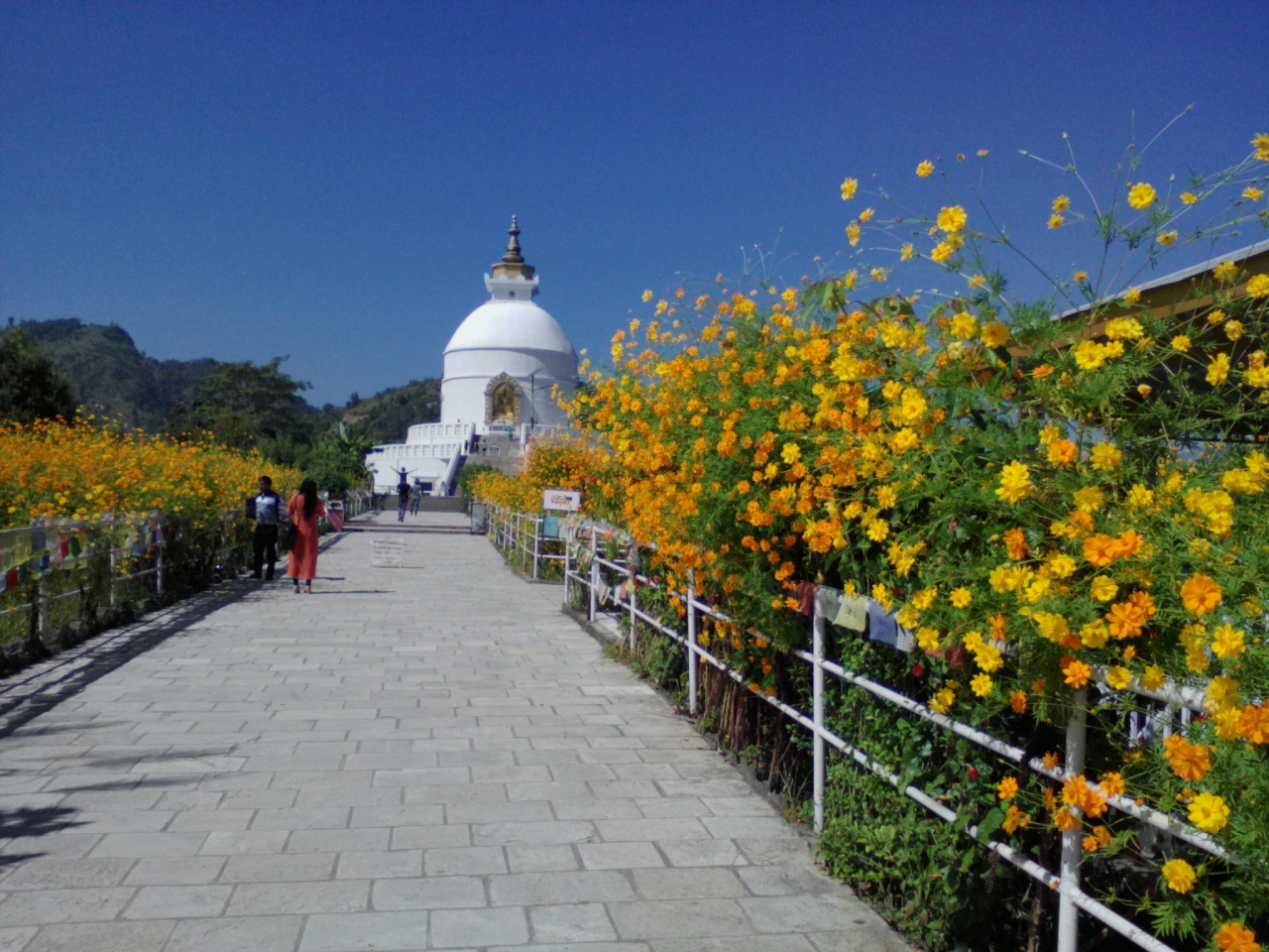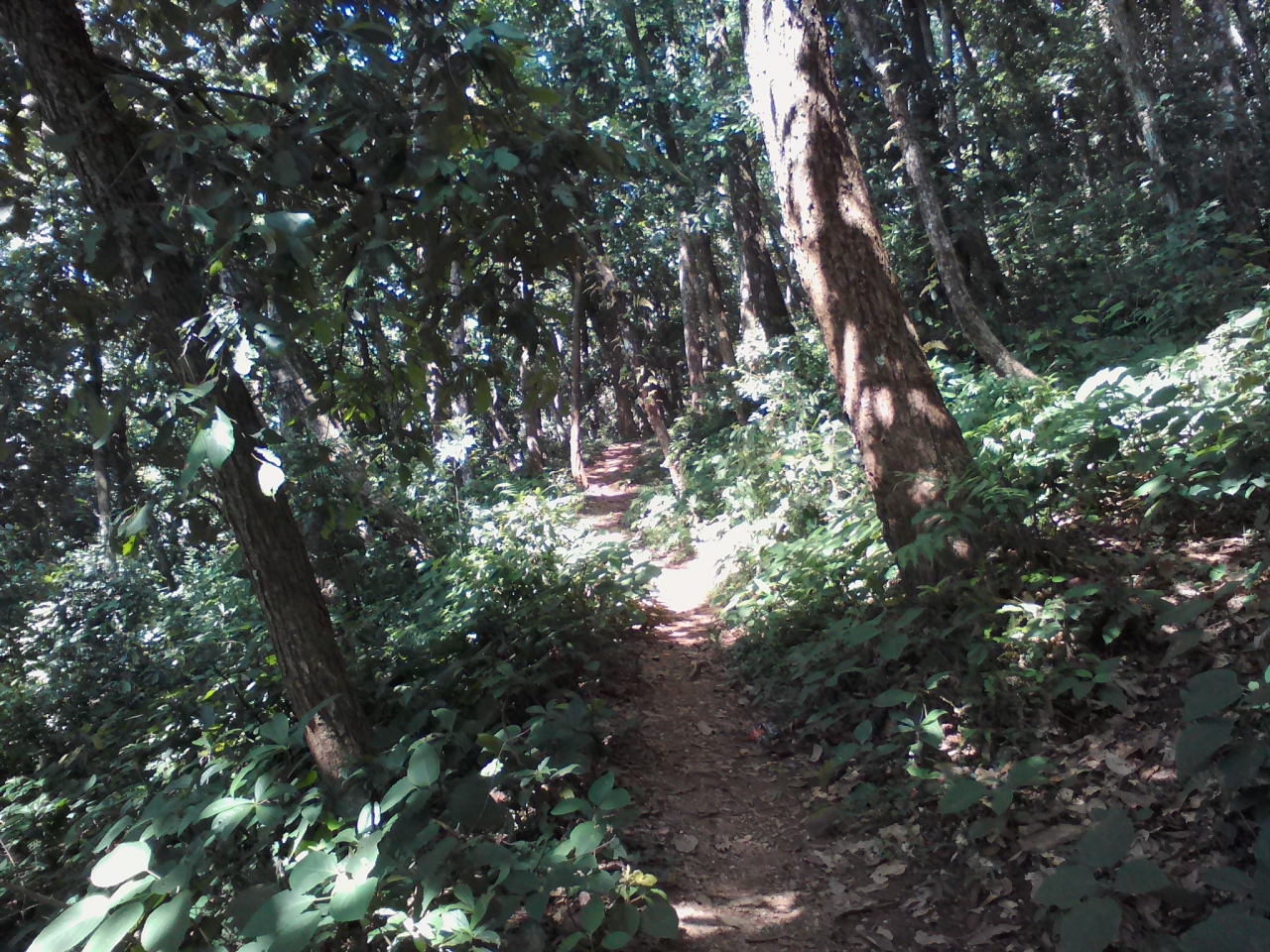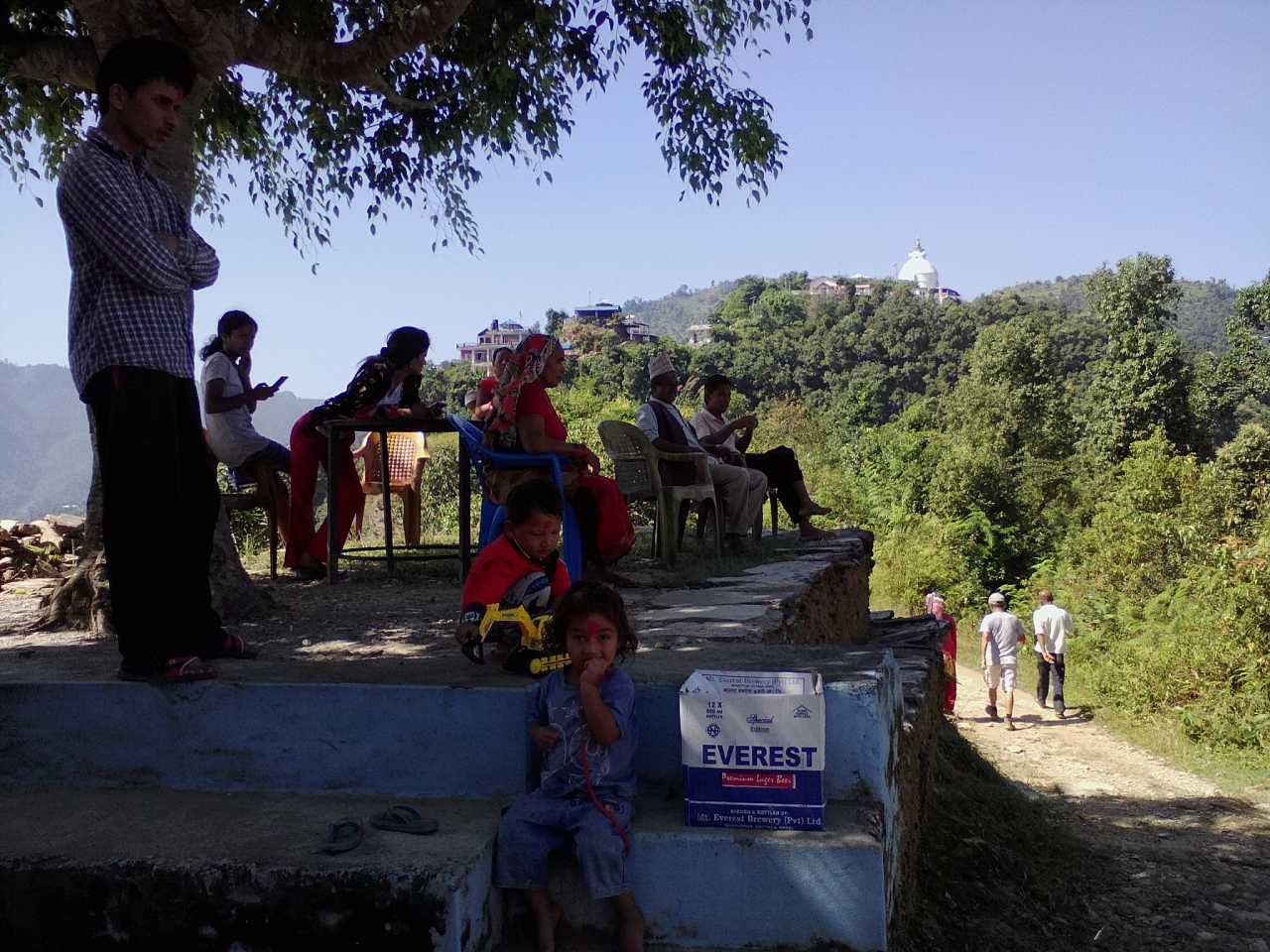 ダムサイドからワイルドな山道を通ってショートカットできます。起点はフェワ湖ダムの下流200mほどにある小さな吊り橋。吊り橋を渡ると右手にコンクリート製の壁があります。3年前に訪れた時はこの壁はなく山の中に入る小道が続いていましたが現在はゲートに鍵がかかっています。しかし壁の端を回り込めば中に入れてしまうのでその小道を進めばいいです。鍵がかかっているということは一応立入禁止になっているかもしれないので誰かに注意されるかもしれません。そんな心配をしたくない方は壁沿いの道をそのまま進んで下さい。今回、私はこのルートを取りました。10分ほど進むと壁が終わるのでそこから山に入れます。しかし下草に埋もれて道がわかりにくいです。とにかく上に少し登ればしっかりした小道が現れます。この道は前述のゲートから続く小道で道なりに進めばパゴダに辿り着けます。終始うっそうとした森の中の道なので特に女性は1人歩きは避けた方がいいかもしれません。森を抜けると商店のある開けた稜線に出ます。そしてパゴダが見えます。吊橋からパゴダまでは1時間15分くらい。商店から反対方向に下るとデヴィスフォールへと続く幹線道路に出ます。