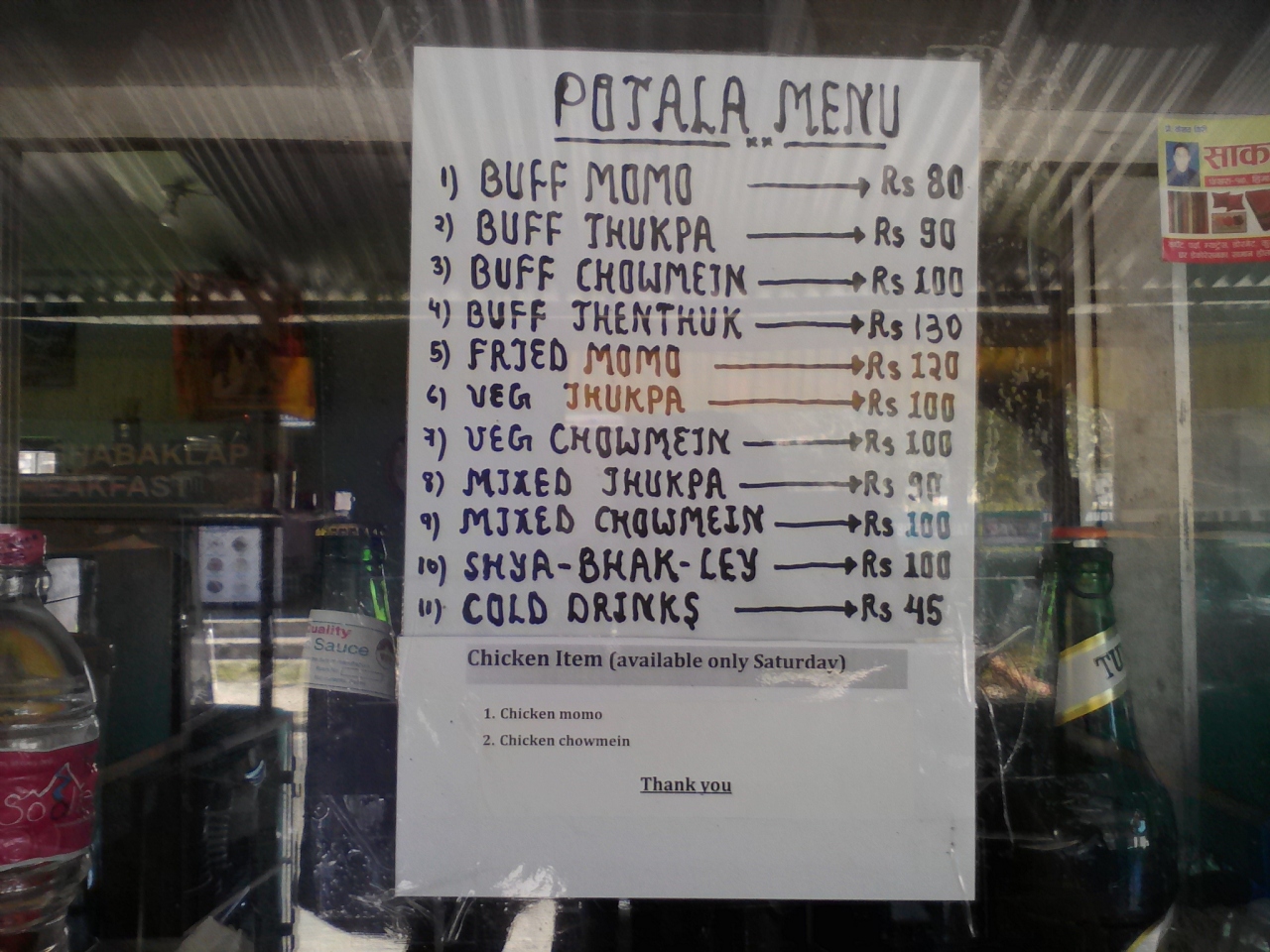 残念ながら閉店してしまいました。3年前に訪れた時は長期休業中とのことで看板は残っていましたが現在はそれすらありません。どうもご主人の高齢のためのようです。かつてダムサイドが賑わっていたころは日本人バックパッカーの憩いの場でした。たくさんの思い出もある方も多いと思います。残念でなりません。現在は「さくらレストランとロッジ」に変わっています。ちなみにですがこのG.H、ダブルルーム800Rs(トイレシャワー付き)、500Rs(共同)です。レストランのメニューを見てみたら、焼きおにぎり(280Rs)、みそスープ(130Rs)なんてものがありました。これがゆいつの名残りでしょうか。