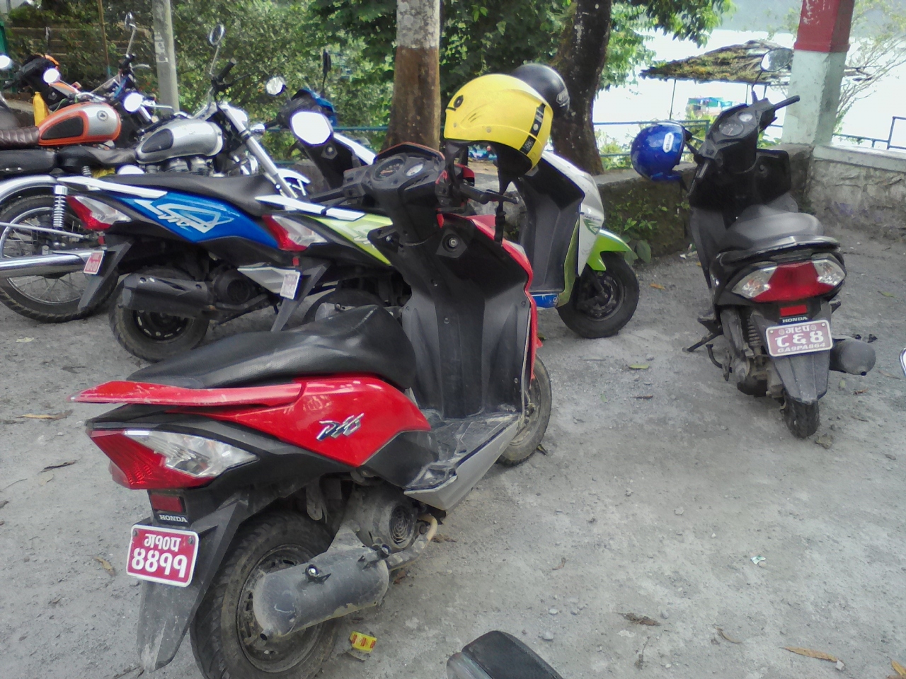 バイクはほとんど見かけませんでしたが唯一あったところはスクーターで1日1300Rs(1時間400Rs)。レイクサイドロードから「TEMPLE TREE RESORT」のある通りを少し入ったところにある店(店名なし、表に自転車が並べられている)ではスクーター1日1000Rsでした。要パスポート、免許証。免許証は国際免許証がベター、日本のものでも貸してくれますがポリスに止められた場合は罰金2000Rsかもしれないとも言われました。レイクサイドロード沿いの1300Rsのところのおっさんは警察には止められない、ノープロブレムだと言っていました。- 旅行時期