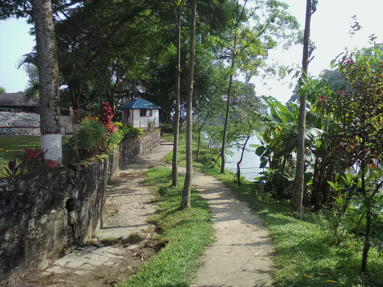 公園内を通ってダムサイドへショートカットできます。レイクサイドロード沿いにあるメインゲートを入ると(時々閉まっていますがすぐ脇にある通用扉から入れます)正面に噴水が見えますがそちらではなく斜め左に続く小道を進みます。すぐに小さな吊り橋があるのでそれを渡ります。後は道なりにフェワ湖沿いを進めばダムサイドです。ちなみに左側にある壁の中は警察署です。ダムサイド側の出口には水汲み場があるので戻る時の目印になります。
