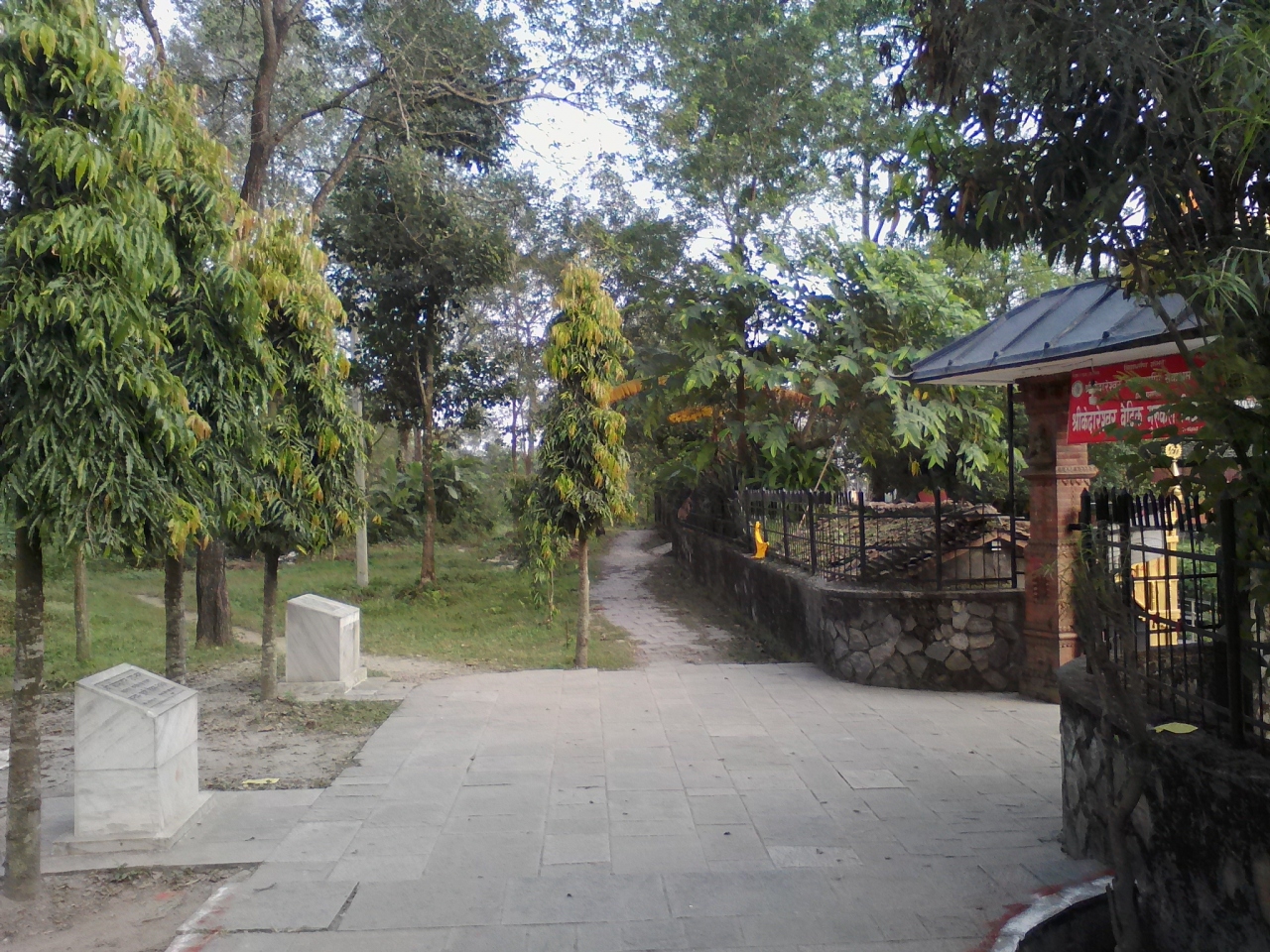 もっと大きくバスンダラ公園を通りショートカット(大した違いではありませんが)することもできます。バスンダラ公園側(Fish Tail Lodgeへの渡し船乗り場の近く)にも入口があり、扉に鍵が掛かっていることがありますがすぐ横にある階段を使えば中に入れます。少し歩くと噴水から続く石畳の歩道に出ます。右手に現れる寺院入口から左斜め前に続く小道を進めば上記の吊り橋に出ます。- 旅行時期