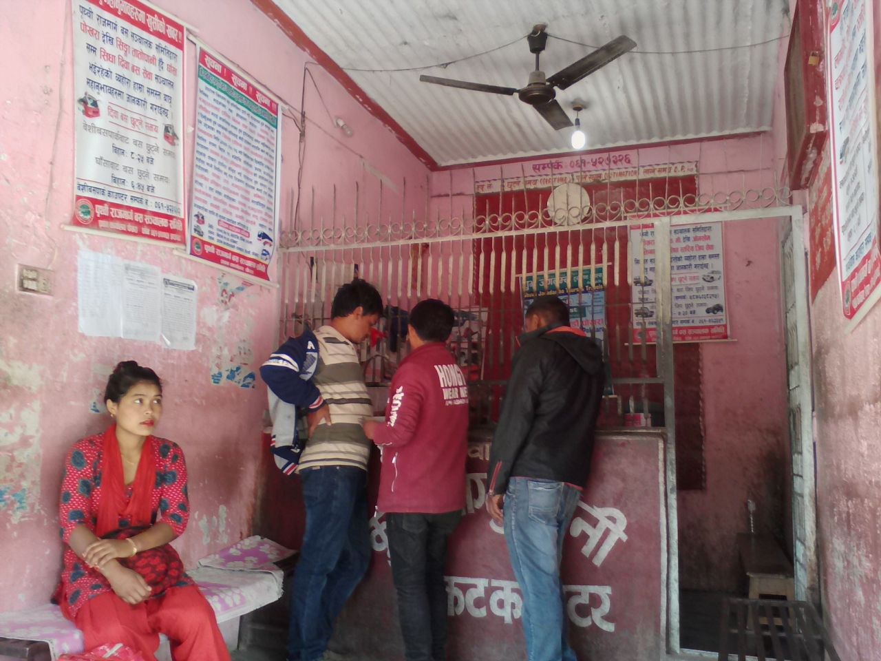 トレッキングの起点としてフェディを選ぶ人は多いと思いますがちゃんとローカルバスが出ています。ポカラから西方に向かうバスはすべてフェディを通るので本数は多いです。30分毎にはどれかのバスが出ていると思います。料金は50Rs。朝早くのバスは6:00発のベニ行きがあるのでそれに乗れば行けます。ネパール人は親切なので行き先を連呼すればどのバスか教えてくれます。チケットオフィスは北側の道路沿いの建物にあります。