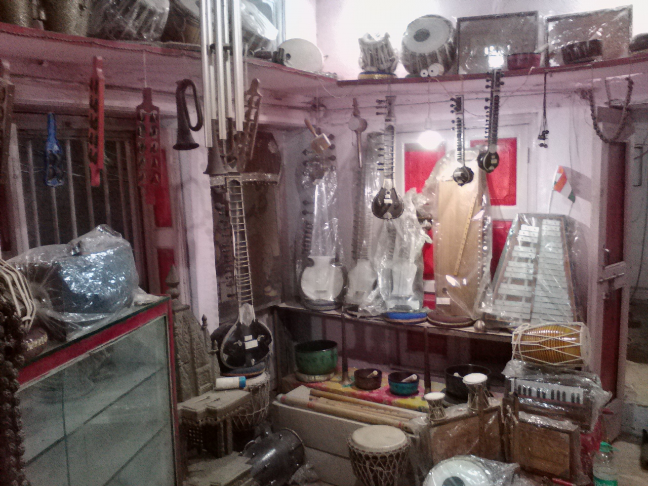 この店では楽器の販売、製作と演奏のスクール、コンサートまで行っているそうです。店主曰く、この店は7代続く創業110年でバラナシでは一番の老舗だとか日本のヤマハからも注文を受け製品を卸しているとか真偽のほどはわかりませんが、ひょっとしたらすごい店かもしれません。とにかく店主は明るくて面白い人です。