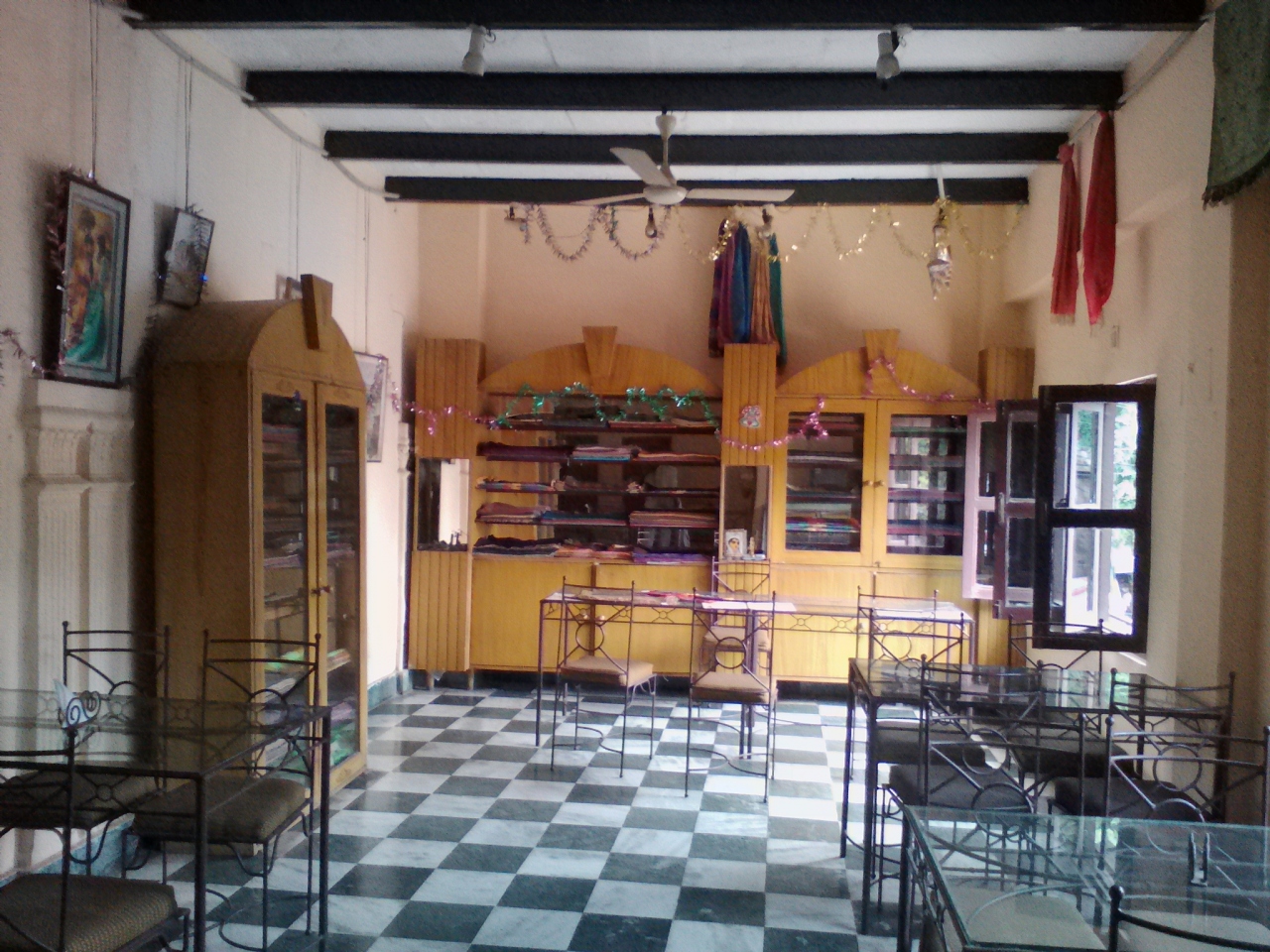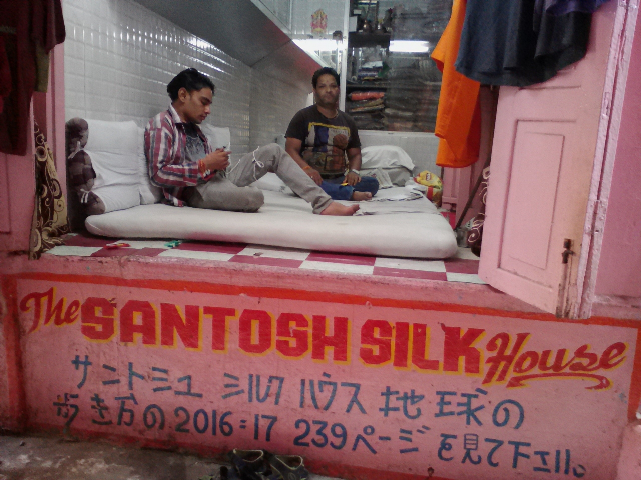 シバラ地区にはシルク工場が多くありシルク製品が安く買えますがこの店はお値段高めのツーリスト用のショップです。1階にレストランを併設しており、ショップは2階。しかし窓が閉まっておりいつもは営業していない様子。ハイクラスのツーリストがやって来ると開けるようです。品揃えは多くなくシルクのスカーフが500Rsからありますが同じものが工場なら100Rsで買えるそうです(本当かどうか確認していませんが…)。いろいろ裏話的なことを話してくれましたが私がこの店で買い物するような客に見えなかったからでしょう。間違ってません。
