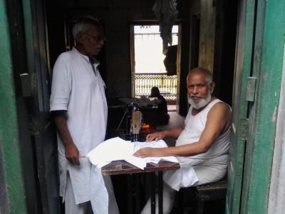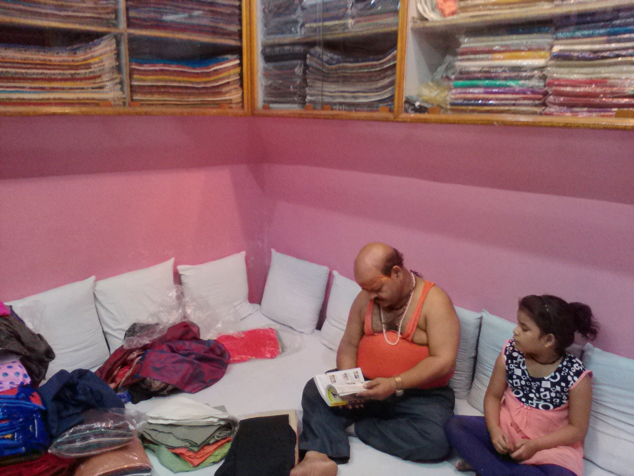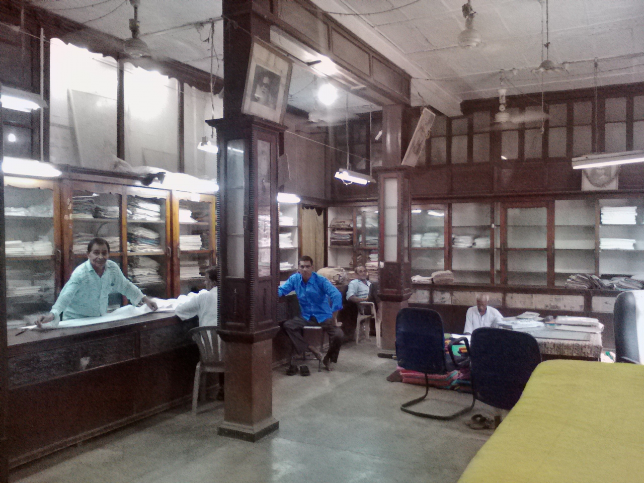 ド・ローカルな生地屋。店内は超シブくていい味出しています。創業は50年以上だそうてす。主にクルタの生地を販売しており2階にテイラーがあるというので行ってみるとおじさんが一人でミシンを操作していました。超いい!