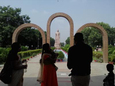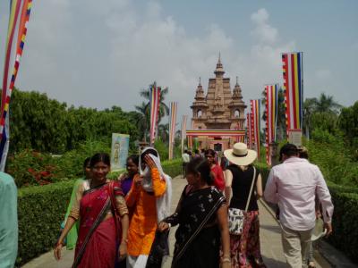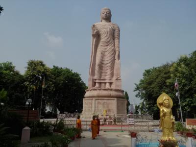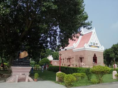 サルナートにあるタイ寺院。見どころは水路の先に建つ高さ約25mの大きな仏像。高さは約25m、2011年3月に12年かかり建てられました。仏像のたもとでオレンジ色の袈裟を着た少年僧達に遭遇。タイ語で挨拶してみましたが通じませんでした。おそらくお経はタイ語であげると思いますが日常会話は勉強していないのかもしれません。敷地内には“本場”とは少し違う本堂もあります。入場無料。