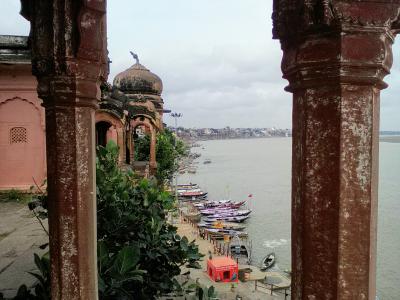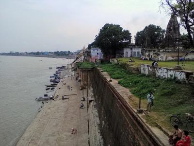 城砦のあるガート。見事な造りですがガートから眺めるだけでは100倍もったいないです。ちょっと複雑ですが最寄りの階段を上がり小道を回り込めば城砦上部に登れます。そこには寺院があり意外な光景が広がっています。ガンガー沿いはベンガリートラのように細い路地が入り組んでまるで迷路のよう。しかしこんなところにこんな広々とした空間があるなんて思いもよりませんでした。眺めも素晴らしいです。知ってる人は知っている。地元の人はもちろんですが旅行者もちゃんといました。個人的にはここを知らずしてバラナシを去るなんて…くらいのスポットです。