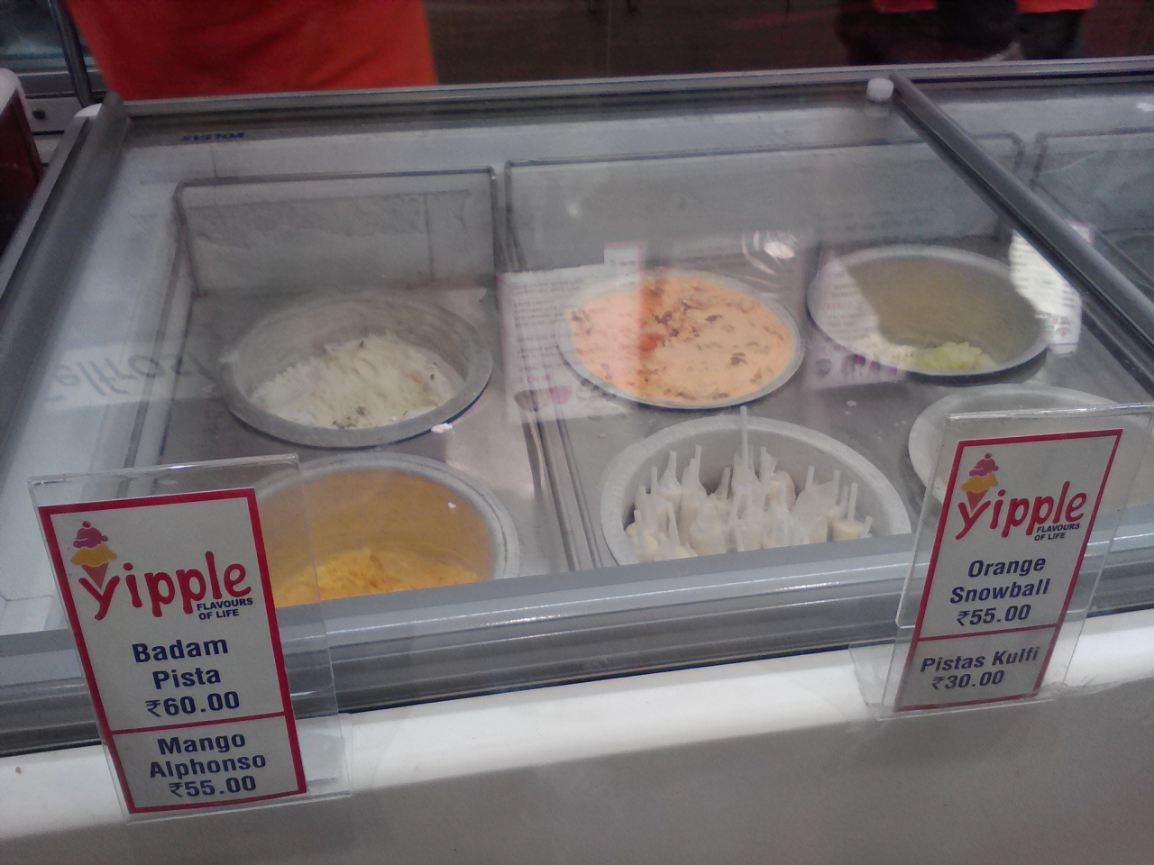 Ram Baghの北西角の交差点に建つデパート1階に入っているスイーツ、スナック系軽食の専門店です。もちろん店内で食べられます。アイスクリームも種類が多くどれもおいしそうです。で、「Badam Pista」(60Rs税込)をチョイス。Badamとはアーモンドのこと。イメージ的にはアーモンドクリームのバニラといった感じです。他のものよりちょっと高いです。レジで先に会計を済ませ、レシートを売り場で渡します。カップかコーンを選べますがカップにしました。味は濃厚でまったり、小さなドライフルーツとナッツが入っていました。A/Cが効いているので涼めます。Wifiはありません。