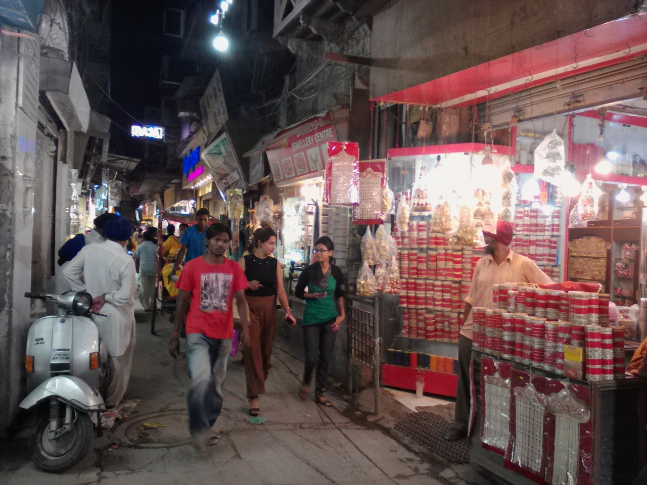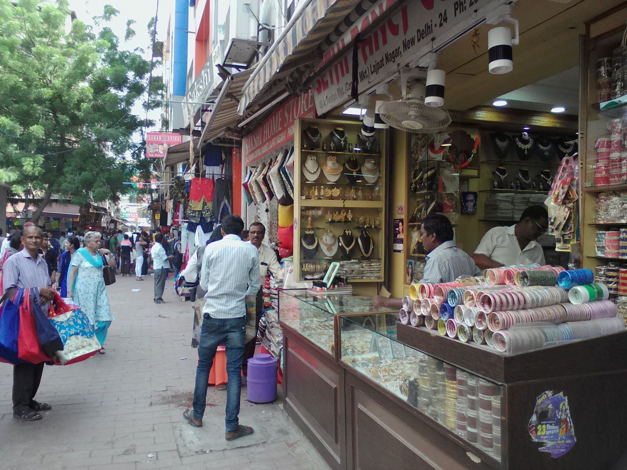 デリーメトロ、バイオレットラインのLajpat Nagar駅東側に広がる商店街。駅から3分ほど歩いたセントラルマーケットは特に商店が密集しています。中心部は車両乗り入れ禁止(一部バイクはok)になっているのでとっても静か、町並みもそこそこ清潔で歩きやすいです。インドのカオスを求める方にはもの足りないかもしれませんが、屋台も出ておりのんびりぶらぶら買い物ができます。