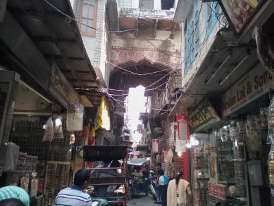 旧市街の路地はごちゃごちゃと入り組んでいて怪しい雰囲気もあります。探検的で面白くもありますが少し不安に感じる方もいるかもしれません。そこでおすすめしたいのがゴールデンテンプルのすぐ近くにあるエリア。ゴールデンテンプルの正面入口に向かって右方向、グルバザールに突き当たるまでのわずか200mほどの通りです。ごくごく近い距離ですが旧市街の喧騒とローカル感が存分に味わえます。この路地はアクセサリーショップが多く、特にバングル(女性が身に着けているカラフルな腕輪)の店が集まっています。それ以外にもバッグやサリー、ステッキ、銅食器の店など、どれもシブシブの店ばかりです。眺めるだけでも十分楽しめます。ゴールデンテンプルを見終わったあとは迷わずGO!です。
