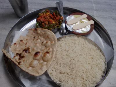 訪れたのは17:00過ぎ。本店は掃除中…。どうも17:00〜19:00は本店は準備中になるようです。しかしご安心を、向いのSWEET CENTREで本店と同じメニューが食べられます。なんとどちらかの店舗が常に開いており24h営業だそうです。せっかくなので本店の店内で食べたいところ、というわけで19:00に出直し。まだ準備中でしたがお願いして入れてもらいました。メニューは老舗店らしく王道を行くもの。ターリーは5種類。ターリーを食べるつもりでしたが、ボリュームがありすぎで値段も高かったので単品でオーダー。ミックスベジハーフ(75Rs)、ハーフライス(30Rs)、バターチャパティ1枚(CHAPATI CHOPRI 15Rs)、デザートとしてFIRNI(20Rs)。やはりちゃんとした店で食べるミックスベジはおいしいです。安食堂で食べるものとは二味は違います。1人ならハーフでちょうどいい量です。FIRNIは簡単に言うとライスプディング、なかなかイケます。お会計は140Rs+税で162.6Rs。2.6Rsはおまけしてくれました。お腹いっぱい、大満足のディナーでした。- 旅行時期