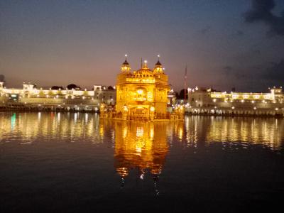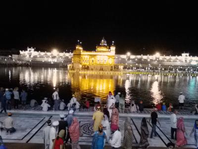 まだ建設途中のためか入口周辺には英語の「Guru Ka Langer」の看板はありません。中に入りまず右手にあるのが“チャイコーナー”。カップを受け取り、横の蛇口のところへ行くとおっちゃんがチャイを注いでくれます。ゴザに腰をおろしてゆっくり楽しみましょう。食事をする場合はまっすぐ進み突き当りの“食事部屋”を左に通路を回り込みます。さらに進むと左側で食器(プレート、カップ、スプーン)を配っているので受け取ります。その後、食事部屋に進みますが食事部屋は1階と2階にあり、その都度場所が変わります。係員の指示に従うか、周りの人の流れに従えばいいです。部屋に入って座っていれば食事が配られます。周りの人と同じようにしていれば大丈夫です。食事の基本はダル、チャパティ、野菜のカレー。ライスや甘いデザートがつく場合もあります。ダル、チャパティ、ライスなどは配る人が分かれており時々回ってくるのでおかわりがしたければもらえます。食べ終わったら食器を持ち1階で返します。返却口の奥では巡礼者達が食器を洗っており我々も参加できます。時間のある方は手伝ってみてはいかがでしょうか。食堂は24h開いておりいつでも食事ができます。一番混み合うのが朝9:00頃、すごい熱気に包まれます。- 旅行時期