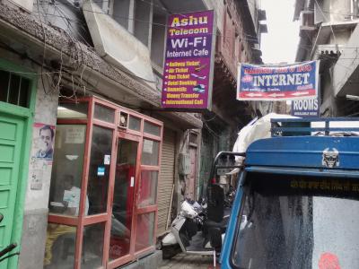 まずはネット屋「Ashu Telecom」。場所はジャリヤーン ワーラー庭園前のマクドナルドの向い側の路地を入ったところ、地図参照。1時間30RsでWifiが使えます。ここは結構速くて使えます。なぜか身分証明書(パスポート)が必要。PC4台もあります。