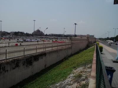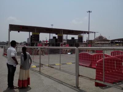 ヴィシュヌ派の聖人スワーミナラヤンを祀った巨大な寺院。寺院の建物自体も巨大ですが駐車場を含めた敷地が想像を超えた広さです。そしてセキュリティが厳しくて面倒くさい。カメラやスマホ、PCなどの電子、電気関連機器、大きなバッグ、傘なども持ち込み禁止。書類に必要事項を記入して預けます。さらに金属探知機、ボディチェック。もう寺院にたどり着くまでが大変。唯一の救いが入場無料ということ。これだけですでに文句たらたらでテンションだだ下がり、わざわざメトロに乗ってまでやって来たことを後悔し始めていました。