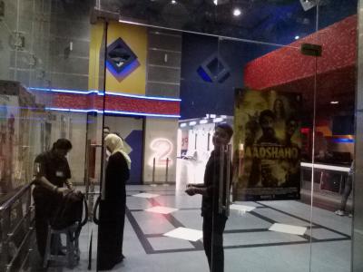 とんでもないショッピングモール。おそらく10人中10人が驚愕すると思います。それは…モールの中には店舗が入っていないから。いや正確ではありません。店舗は入っています。1階の入口部分にドミノピザ、3階には2スクリーンのシネコン、そして最上階の5階にはちょっとあやしいラウンジ風レストラン。のたった3店舗のみ。それ以外のブースからは店舗はすべて撤退してしまったのでしょうか、現在は立入禁止状態。まさにゴーストタウンならぬゴーストモールです。なので買い物目的で行ってもムダです。ちなみに映画を見るにはモールの敷地入口にある“BOX OFFICE”で先にチケットを買わなければいけません。大人1人150Rs。ちなみにもう一つ、地下駐車場へと続く階段はカップルのイチャつき場になっています。不要不急の下りは遠慮したほうがいいと思います。