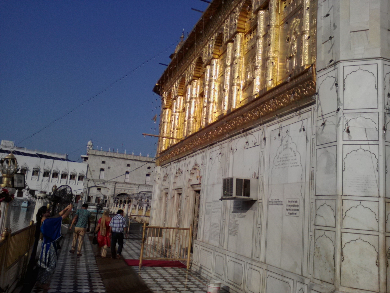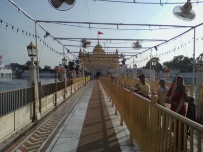 もっとマイナーな寺院かと思っていましたがなかなかどうして、かなり大きな寺院です。なんとゴールデンテンプルそっくりの造りです。なのでてっきりスィク教の寺院かと思ったらなんとヒンドゥー寺院でした。なので髪を隠す必要はありません。四角い池の中に建物がある造りはスィク教寺院独特のものかと思っていましたが違うんですね。訪れたのは夕方、人々が集まってくる時刻。夕涼みを兼ねて皆池の周りをそぞろ歩き。ゴールデンテンプルよりははるかにのんびりした光景に出会えます。
