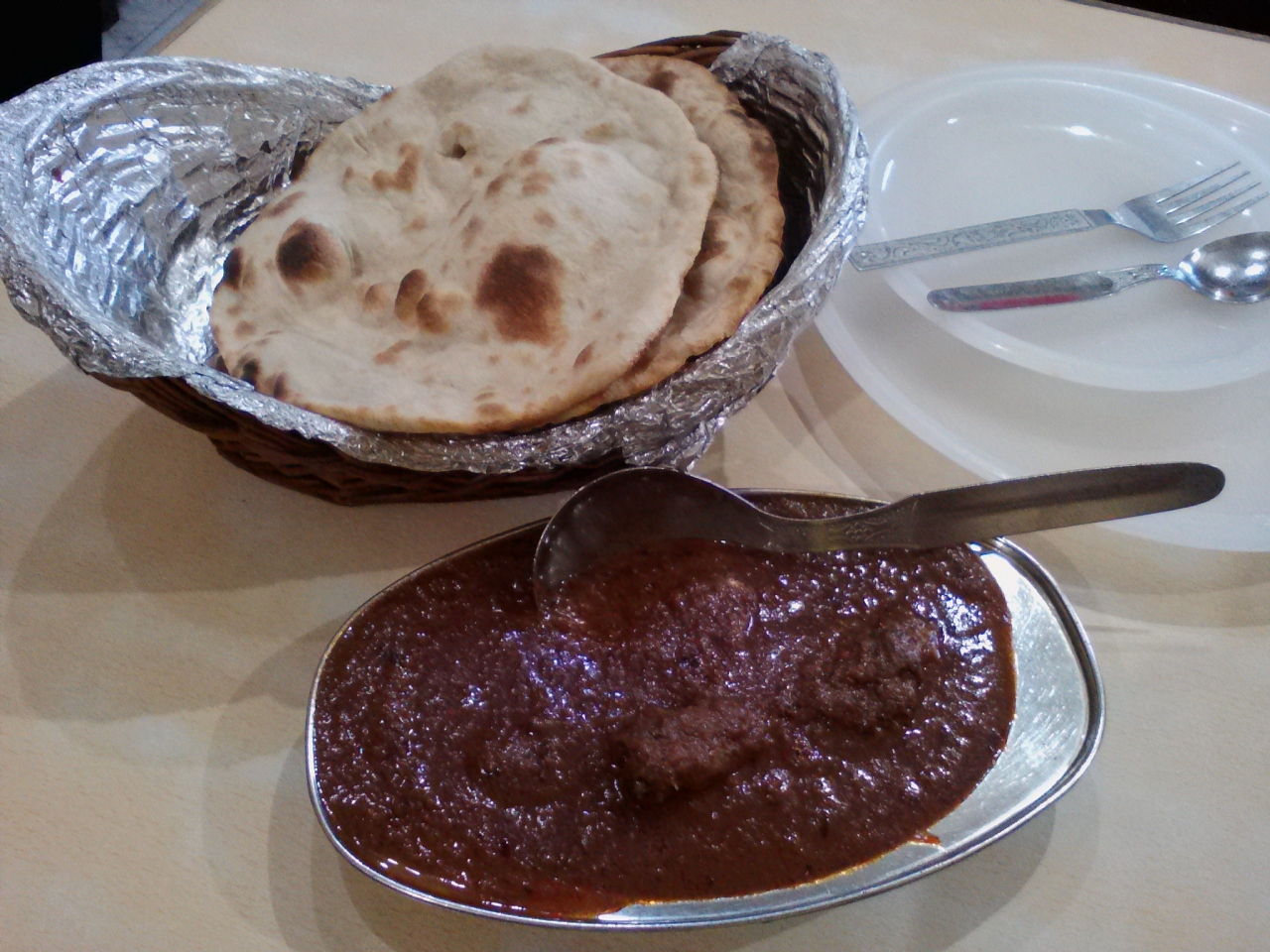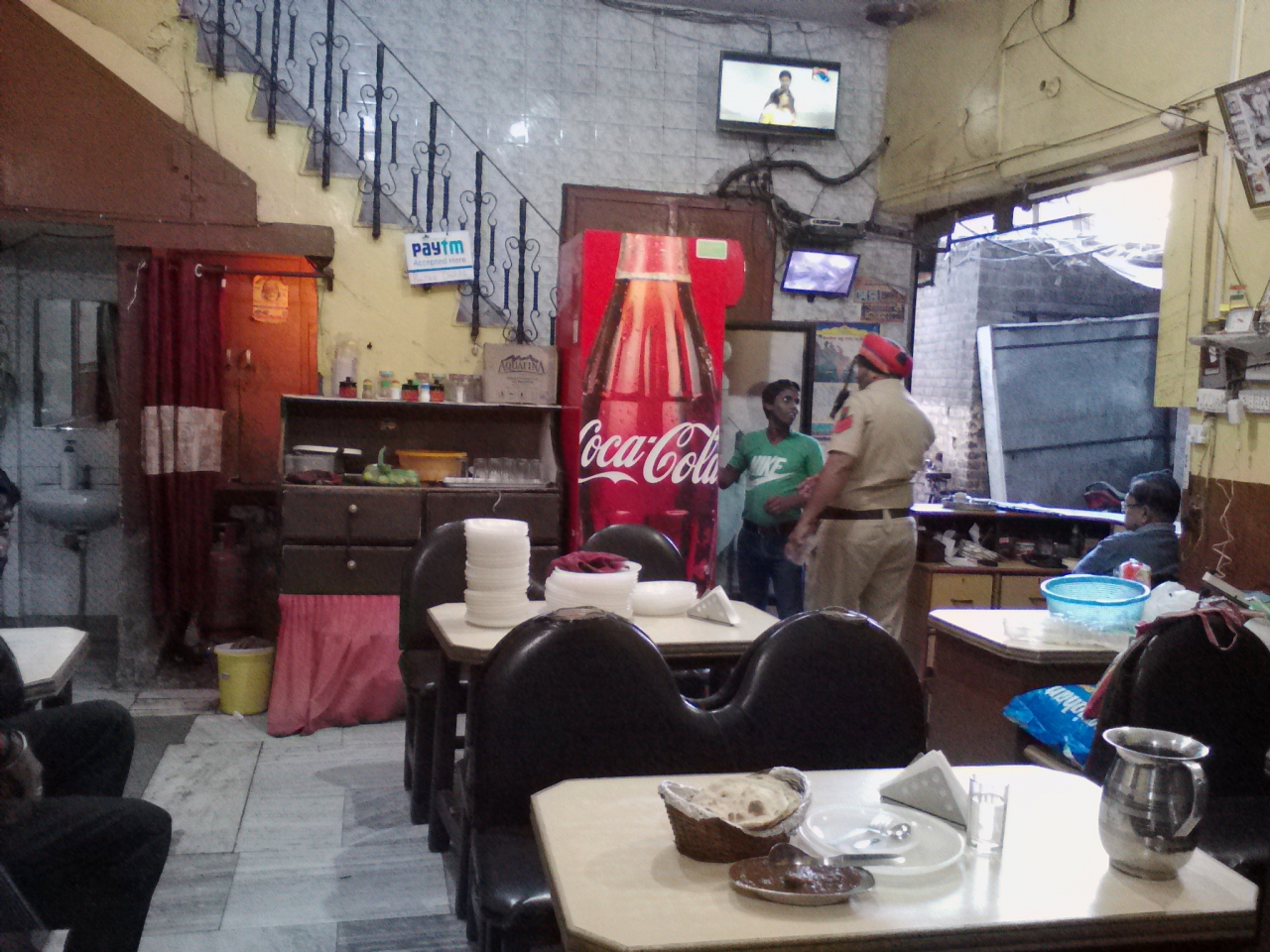 ホール ロードから見える看板は新しくおしゃれなものでなかなかセンスのいい店なのかなと思い路地を入って行くとなんとも味わい深いローカル食堂。1967年創業の老舗店。 そのギャップに思わず笑ってしまいました。ベジとノンベジどちらもOK。ベジターリーでもよかったのですがライスが付くものは190Rsとちょっと高い。130Rsのシンプルなターリーにはライスが付かない。それならばと言うことでなキチンカリー(120Rs)とタンドリーロティ2枚(1枚10Rs)をオーダー。訪れた時間が18:00とちょっと早かったせいか客は私1人しかいないにも関わらず30分ほど待たされました。その分出てきたチキンカリーはなかなかのうまさでした。それほど辛くなく深みのある味わい。ロティ2枚ではカレーが消化できず、もう1枚追加してしまいました。お腹一杯大満足でした。お会計も150Rsポッキリ。サービス税、消費税なんてヤボなものは取りません。こういうところがローカル食堂のいいところ。超おすすめの食堂です。