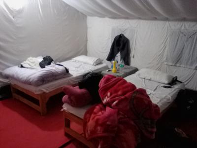 ローカルバスで行きました。木曜の7:00出発で15:20(所要8時間20分)にスパンミク到着。食事休憩やトイレ休憩、人の乗り降り、そして道も悪いのでとにかく時間がかかります。スパンミクには宿は多数あります。私はバスが到着した近くにあった「Wonderland Tourist Camp」に宿泊。テント様式の宿で一室(ツイン)1000Rs。トイレ付きでシャワーはバケツにお湯をもらえます。テント様式のところはこれが相場のようです。他にホームステイ(200Rs〜)もあります。