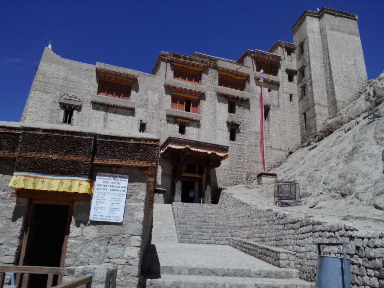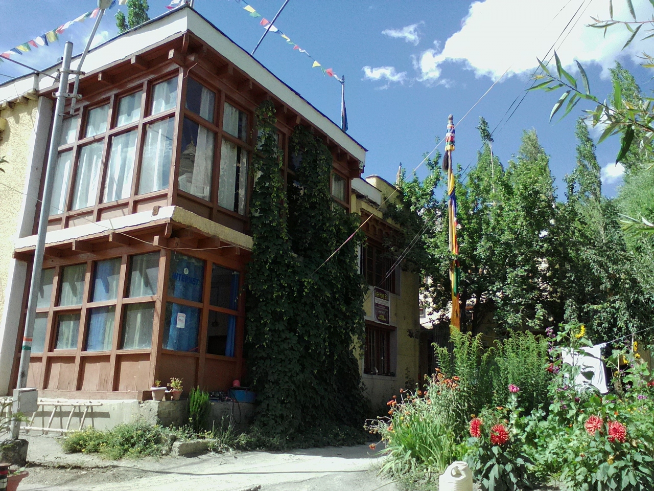 フォードロードをかなり下ったレーの町外れともいえるところにあります。メインバザールまでは一本道ですがずっと上りで約15分。標高3500mだけあって結構疲れます。帰りは下りですが…。