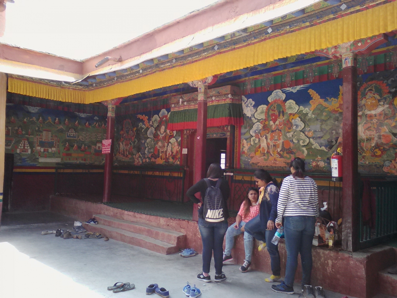 期待していた分、いまいちでした。観光客が多く騒がしかったせいもあるかもしれません。車やバイクで行けるメインの入口のにはチケットカウンターがありますが入場料50Rsを払う人もいれば払わない人もいます。係員として寺の僧がいるのですが厳しくチェックしないし結構いい加減です(13:00-13:30はランチタイム)。しかもメインの入口側ではなく村の家屋の間を通っていくとチケットカウンターはなく普通にゴンパ内に入れてしまいます。