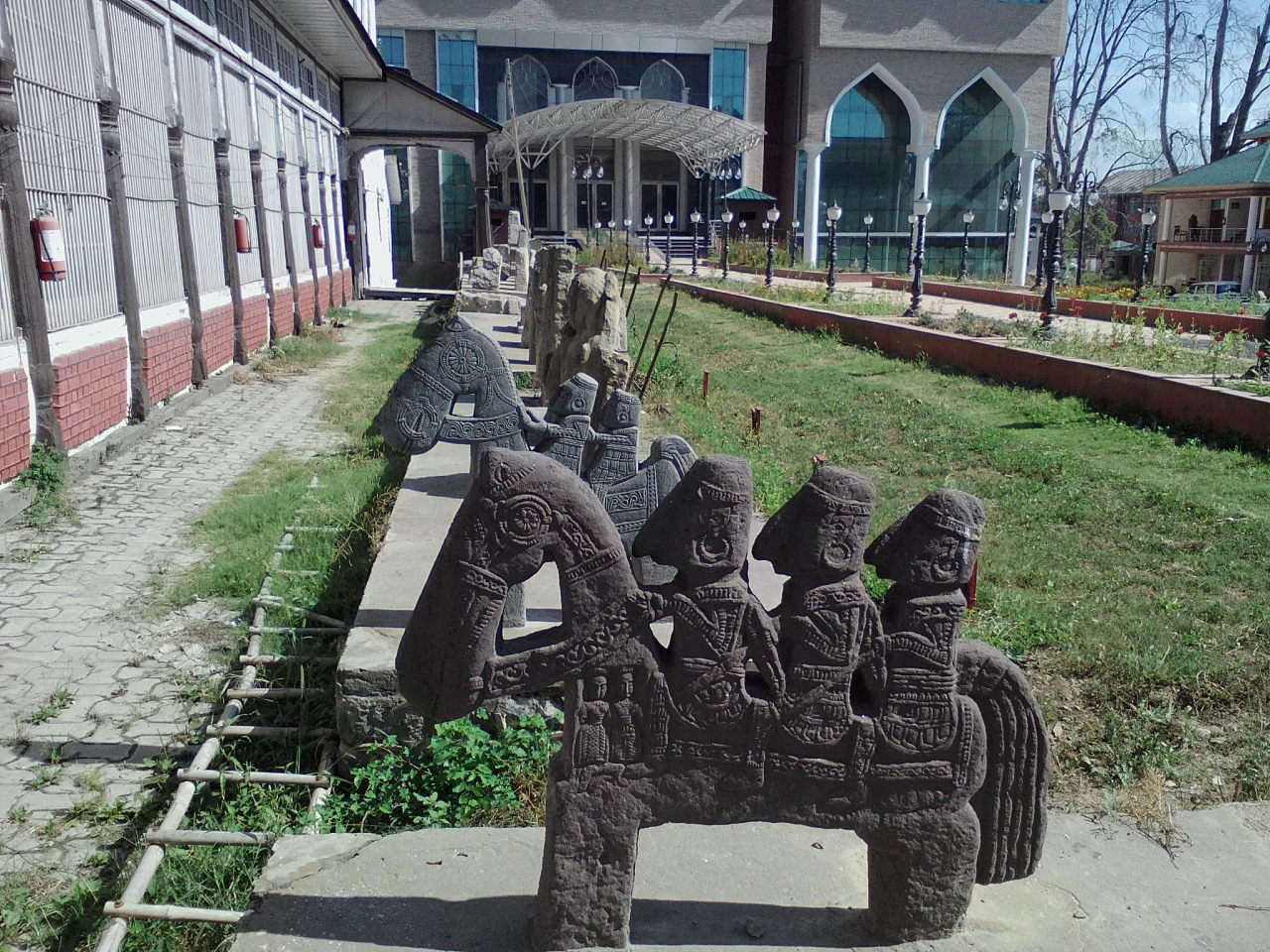 なんか入口の柵は閉まっているし、庭も雑然としていて展示?されている石彫刻の管理はずさんだし、これは期待できないなと思って建物の中に入るとビビります。中はかなり近代的、しっかりした博物館です。入場料は50Rs(インド人は10Rs)とまずまず良心的なのですがカメラ(おそらくスマホも含む)の持ち込み料が1ギャラリーあたり200Rs。ギャラリーはいくつあるのか尋ねると、5。内部を好き勝手に撮影しようと思うと1000Rsかかります。まあ撮影なんか別にしなくてもいいんですが…。けどかなり無茶な料金設定です。内部には石像や絨毯、民族衣装、工芸品などが展示されておりなかなか見応えはあります。博物館前からダルゲート行きのバスがあったのでダルゲートからもバスで行けると思います。
