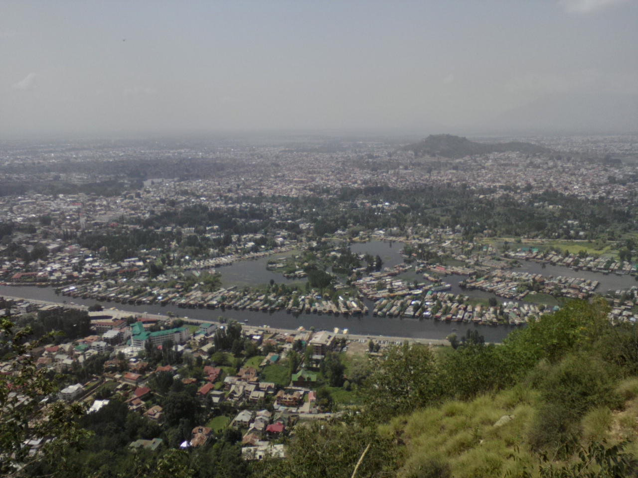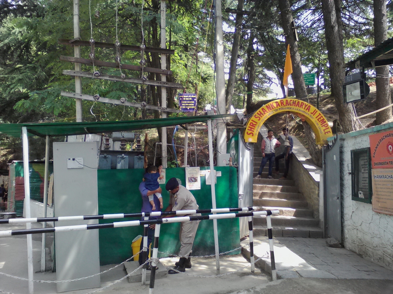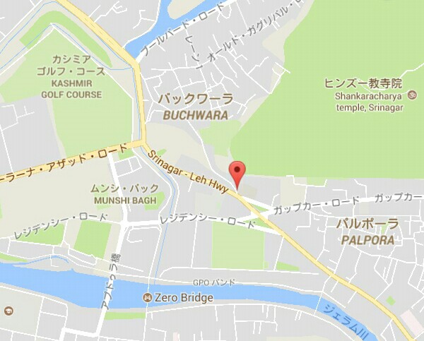 ダル湖畔、ダルゲート近くの山の上に建つヒンドゥー寺院。この寺院に行くルートは2つ。1つはネルー公園近くのブルーバードロード沿いから登る自動車道。多くの観光客はリクシャーやタクシーでこの道を行きます。もう1つは山の南西側から登る登山道(徒歩専用)。登り口は「Srinagar-Leh Hwy」から少し入った「SAROVAR PORTICO HOTEL」の横にある崖のようなところ(少し登ればややまともになります)。わかりにくいので写真の地図を参照して下さい。