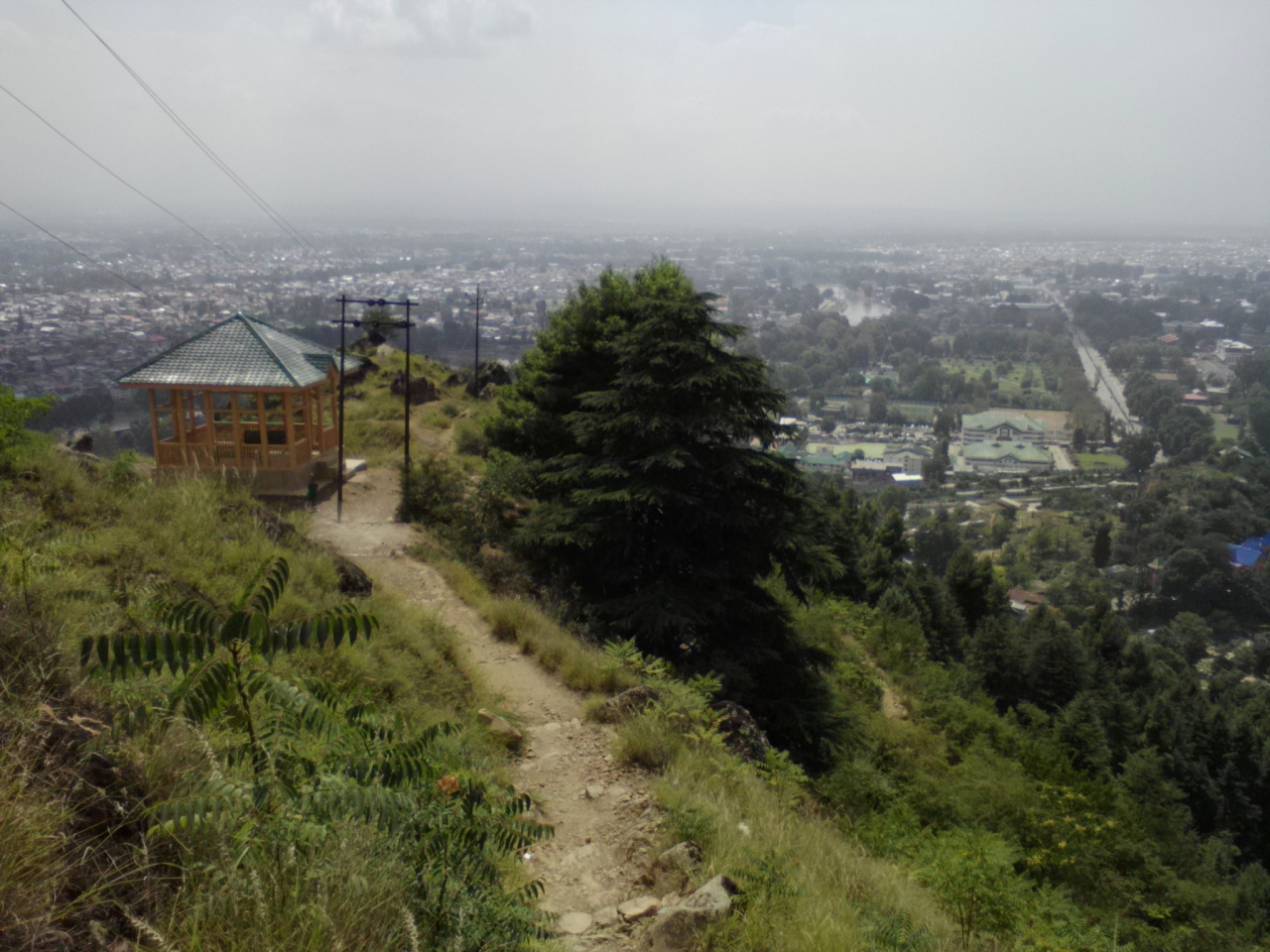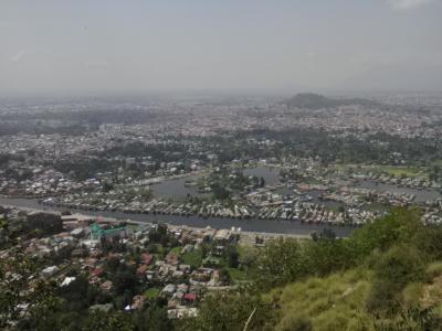 で、自分は後者の存在を知らなかったので自動車を徒歩で登りました。しかし登り口までが遠い。ダルゲートからは約2km、更に寺院までは約5km。5kmの道はつづら折りの道なので何ヶ所か崖をショートカットしました。かなり危険な崖もあり泥だらけになります(おすすめはできません)。そのおかげで約40分で寺院の入口に到着。しかしせっかく苦労して登ったのになんとセキュリティチェックがありカメラ、スマホ等は持ち込み禁止とは…。さらに石段を5分ほど上がると頂上の寺院です。ミニ公園がありダル湖の眺望が素晴らしいのに写真が撮れず…。念のため警備員に徒歩で下りれる道は?と尋ねると何とあるではないですか。で、帰りはその道を使いました。寺院入口からすぐのところにダル湖見下ろせるビュースポットがあります。もちろん写真は撮り放題!車で行った方もぜひ立ち寄ることをおすすめします。上記登り口までは30分はかからないと思います。- 旅行時期
