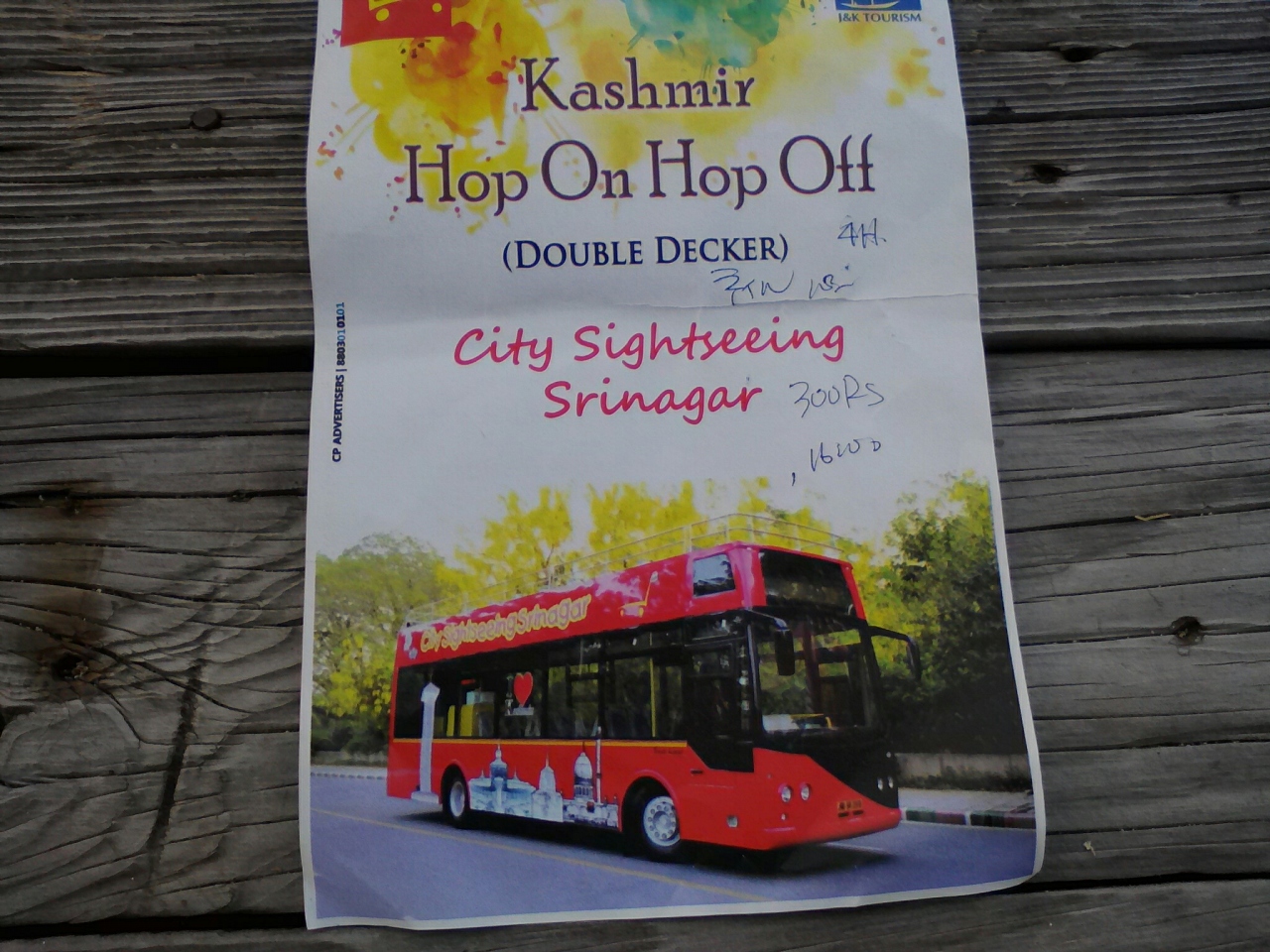 ダル湖畔に点在するムガル庭園や市内にあるモスクへの市バスを使った行き方を聞きに行ったのにそれは曖昧にしか答えてくれず、旅行者用の観光バスを勧められました。ついでなのでご紹介しときます。
