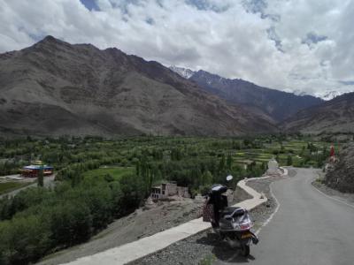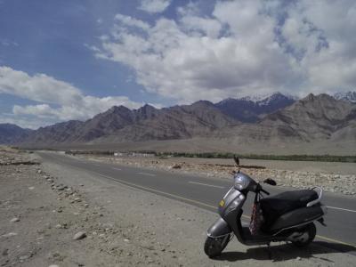 レー市内には結構な数のレンタルバイク店があります。いくつかの店で料金を聞きましたがスクーターで1日800Rsのところが多いです。しかし安い店を見つけました。チャンスパロード(Changspa)の中程にある「PLANET HIMALAYA」。ここは125ccスクーターが1日600Rsという他の店と比べると破格の安さです。700Rsと言われることがあるかもしれませんが600Rsでしょ?と言えばOK。で、1日借りました。24時間ではありません。借りた時に返すべき時間を言われます(例えば昼12:00に借りたなら翌日朝8:00とか)。運転免許証が必要です(コピーは未確認)。なんとパスポートの現物チェックはありませんでした。私は開店時間から閉店時間までの7:00〜20:30を借りました。ヘルメット無料貸与。もちろんガソリンは必要な分は自分で給油(1L≒73Rs)。1日乗り回しても特に問題はありませんでした。