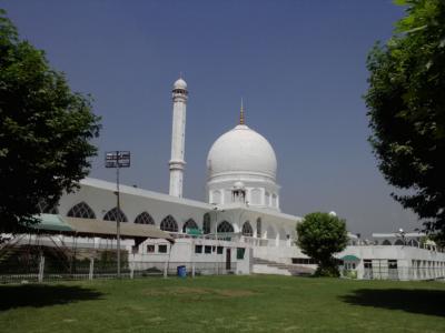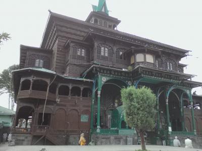 ダルゲートからバスで行きました。乗る前に「ハズラトバルモスク?」と確認して乗ったのですが、結局そのバスは行かず途中で乗り換え。まったくインド人はアテにならない…。ダルゲートからちゃんと1本で行くバスはあると思います。所要約30分、10Rs(乗り換えたので20Rsかかりましたが)。モスク前のバス停で降りダル湖方面に歩くと白い“ネギ坊主”が見えます。内部にも入ることができます。礼拝室の前にはカムと呼ばれるモスリム用の帽子が用意されているのでそれを被って入ります。見学は無料。