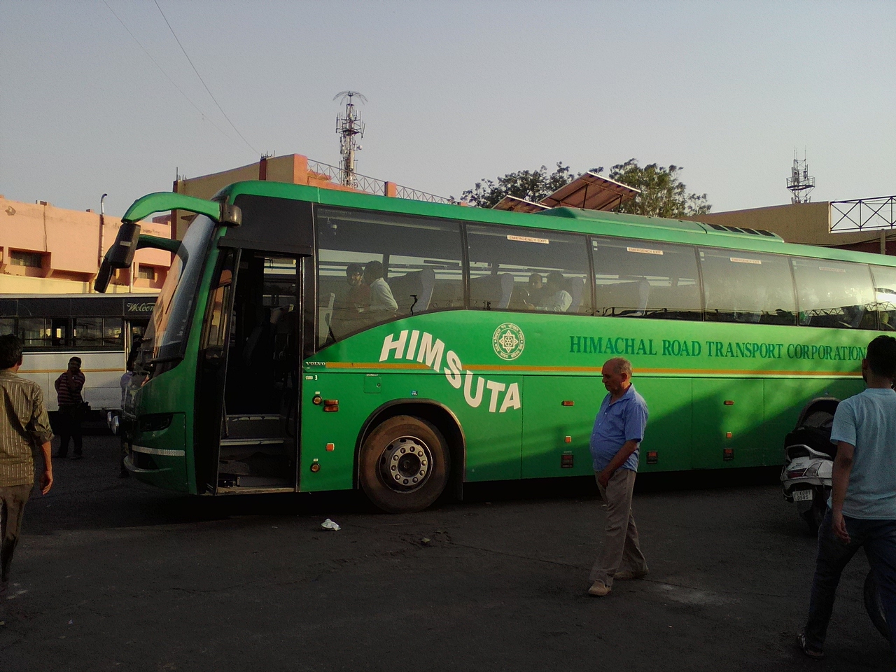 マナリーへの直通バスが出ています。チケット窓口は6番。普通バスもあるようですが距離が長いので18:00発のボルボのA/Cにしました。しかしなぜが窓口が開かない。バスは出発待機中。車掌に直接交渉してなんとか席を確保しました。チケットはネットでも買えるのでもし予約が埋まっていれば窓口でも買うことはできません。オンシーズンで乗客が多かったですが席が空いていてラッキーでした。チケットは代金は1265Rs。高くて目ん玉飛び出ました。
