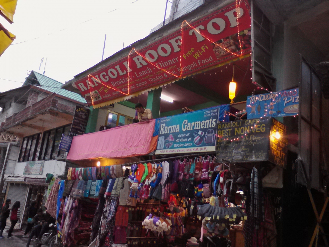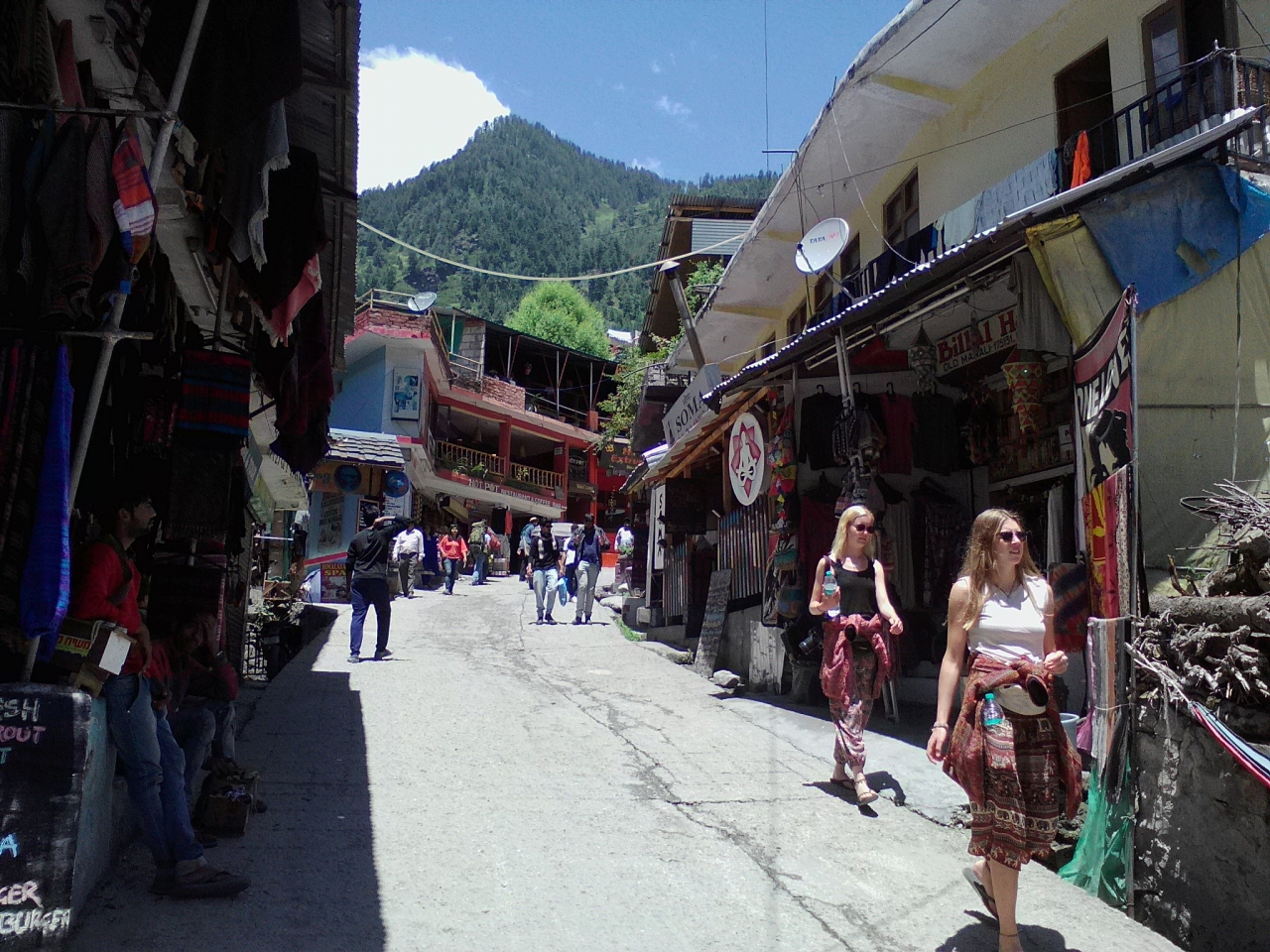 マナリー市街から北西約1.5kmにあるエリア。村の入口にある小さな鉄橋からホテル、カフェ、レストラン、土産物屋が並んでいます。鉄橋付近にはミニ遊園地や川にワイヤーを張って渡るアトラクション、ローカルな食堂などがありインド人観光客が多いです。坂道を登るに連れて欧米人の姿が目立ちます。ここだけ見ると完全に旅行者エリアですが少し路地を入ったり坂道の上の外れには民家がありのんびりムード、昔ながらの生活も垣間見えとってもいい雰囲気です。