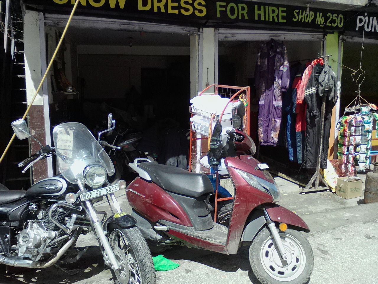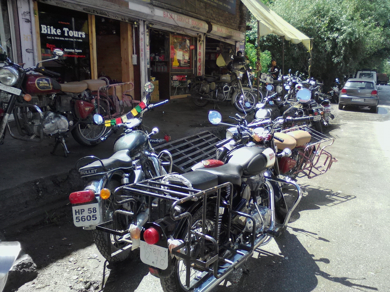 マナリー市街とヴァシシュトの間にバイクの整備を兼ねたレンタルショップが数多くあります。もちろん1日単位から借りられますが24h制ではなく返却は閉店時間までのところが多いです(20:00前後)。運転免許証が必要ですがコピーか写真でもOKです。あとパスポートコピーも必要。何軒か回って料金を調べました。基本、大型になれば料金は高くなります。1日当りの料金です。長期なら割引に応じてくれると思います。