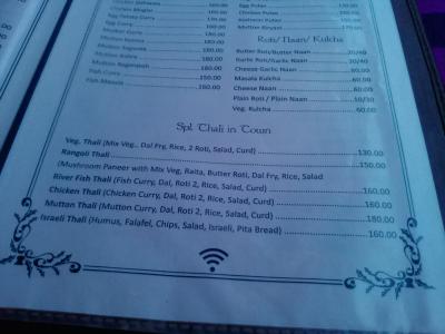 3年ぶりに訪れました。もちろん定番でお得な「Veg.Thali」をオーダー。ミックスベジ、ダル、カード、ライス、ロティ3枚。以前と基本変わらなかったのですが、なんとお値段は据え置きの100Rsでした。他のほとんどの店は値上げしているのにうれしいじゃありませんか。しかもミックスベジとダルは日替わりでおかわりできます。前はちょっと高めのターリーでしたが相対的にコスパは上がりました。この店のウリはタンドリー釜があること。釜で焼いたロティはふっくらアツアツでとてもおいしいです。ピザのメニューも充実、別の日に「Margarita Pizza」(140Rs)を食べてみましたが驚きのうまさでした。もちろんタンドリーチキンもあります。