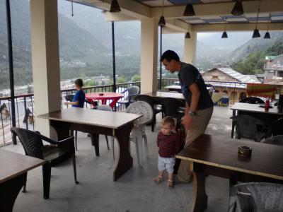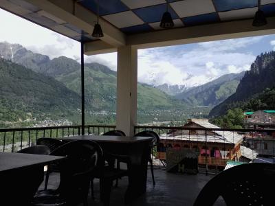 このレストランのもう一つのウリは眺め。もちろん時期と天候によりますが、マナリーの谷と雪山を一望できます。チャイ(20Rs)を飲みながらのんびりするのもいいと思います。室内にも席はあります。以前はビールが飲めたのですが政府のお達しで提供できなくなったようです。