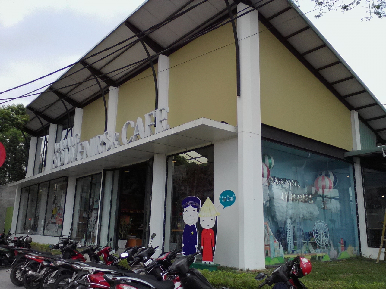 名前のとおりカフェを併設した大型の土産物店。土産物と言ってもいわゆるコテコテの観光土産ではなくちょっとおしゃれな雑貨といったもの物です。マグカップ12.5万、トートバッグ12万、Tシャツ17.5万、イケてるパッケージのベトナムコーヒー15.5万、石けんやオイルなどのスキンケア製品もあります。中でも私が気に入ったのがキーホルダー。ノンラー(三角笠)を被りアオザイを着たかわいらしい女の子のデザインです。1個7.5万ドン。ばらまき土産にもいいんじゃないでしょうか。
