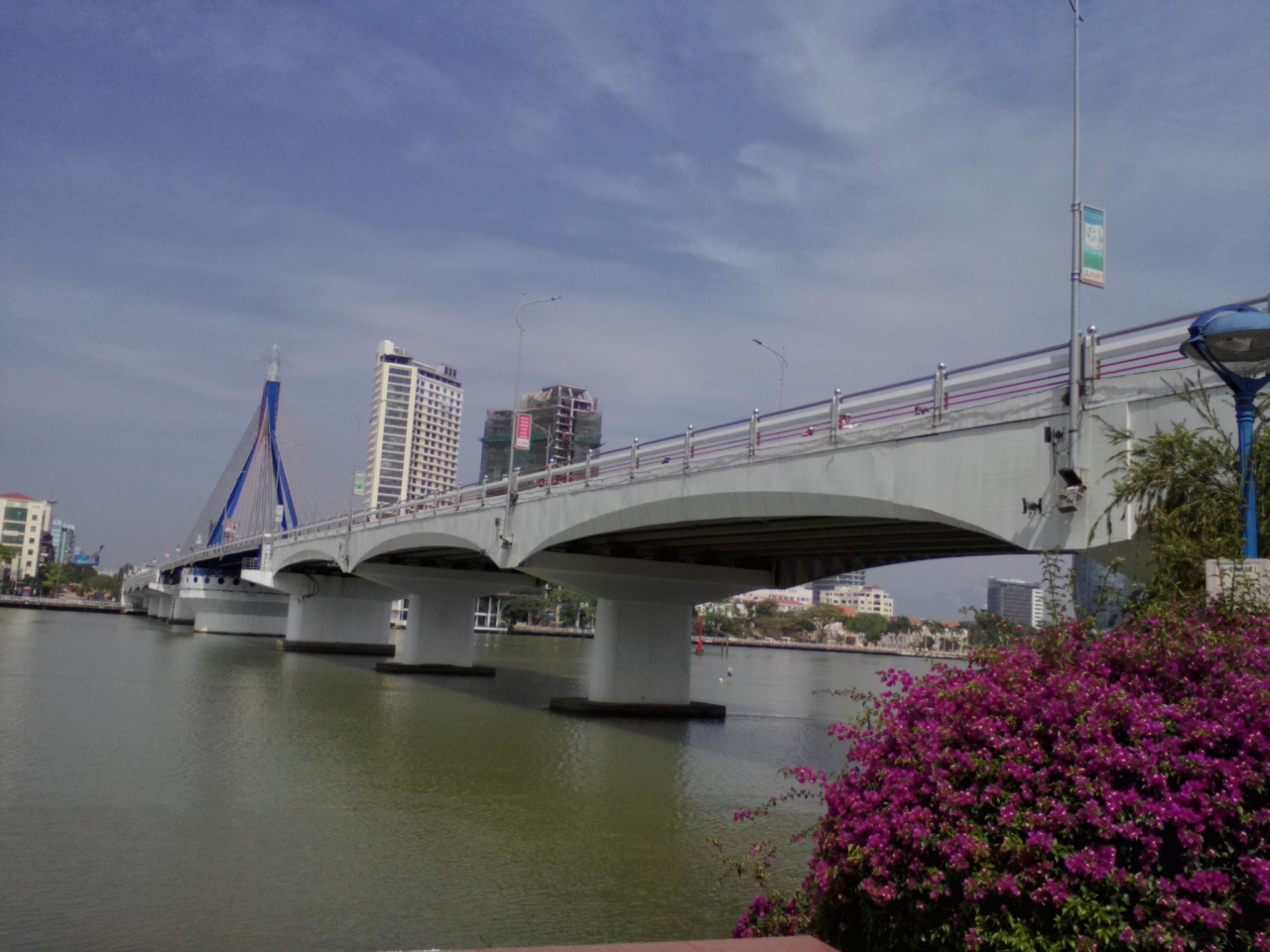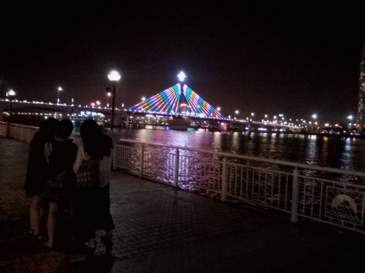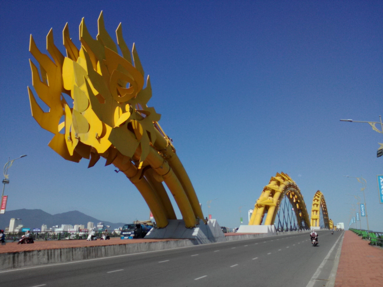 なかなかイケてるデザインだと思います。考えた方はしてやったりかも。しかも口から火を吹くなんてエンターテイメント性もばっちりです。ちなみに火を吹くのは土,日,祝の夜9時からです。実際にロン橋を渡って見て自分が勘違いしていたことに気づきました。西の市街側から渡ったのですがなんかドラゴンに見えない…。で渡りきったところで気づきました。ああ、こちらが頭で向こうがしっぽなのかと。てっきり両方頭だと思ってました。なのでドラゴンを頭からきれいに写真に撮るには午前中に東側からです。午後になると逆光になってしまいきれいに撮れませんのでご注意を…。