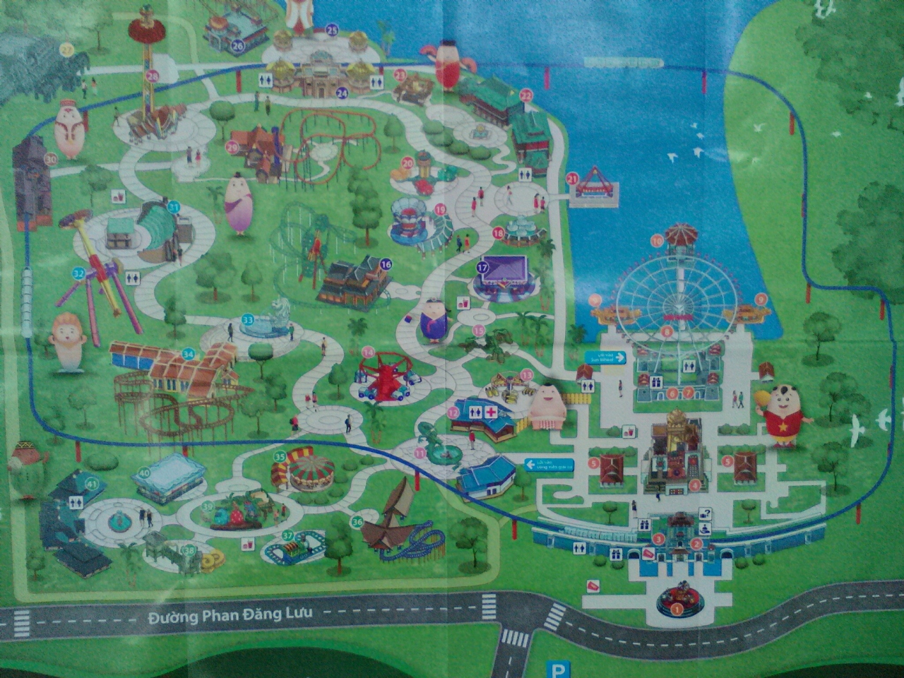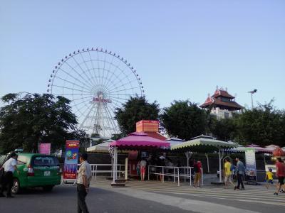 ロン橋からよく見える巨大な観覧車です。ぜひ乗ってみたいなあと思う人もいるかと思います。しかしこの観覧車、Asia Parkという遊園地の中にあります。もちろん入場料が必要です。大人1人30万ドン(1500円くらい)です。観覧車に乗るためにこれは高いなと思いますが、これだけ払えば園内の乗り物がすべて1日乗り放題になります。ジェットコースターもいくつかあり、その他の乗り物もあります。損と感じるかお得と感じるかはあなた次第です。